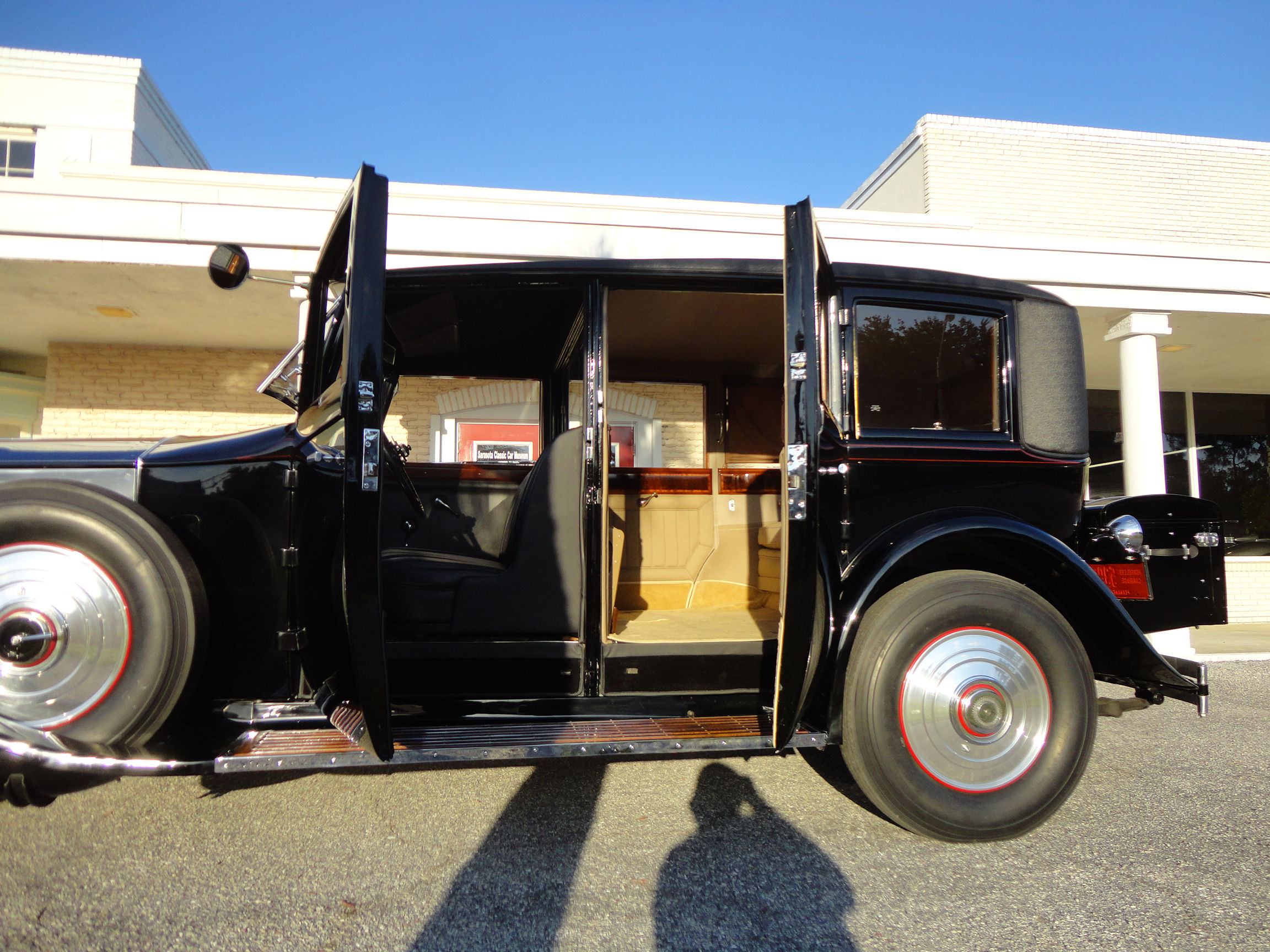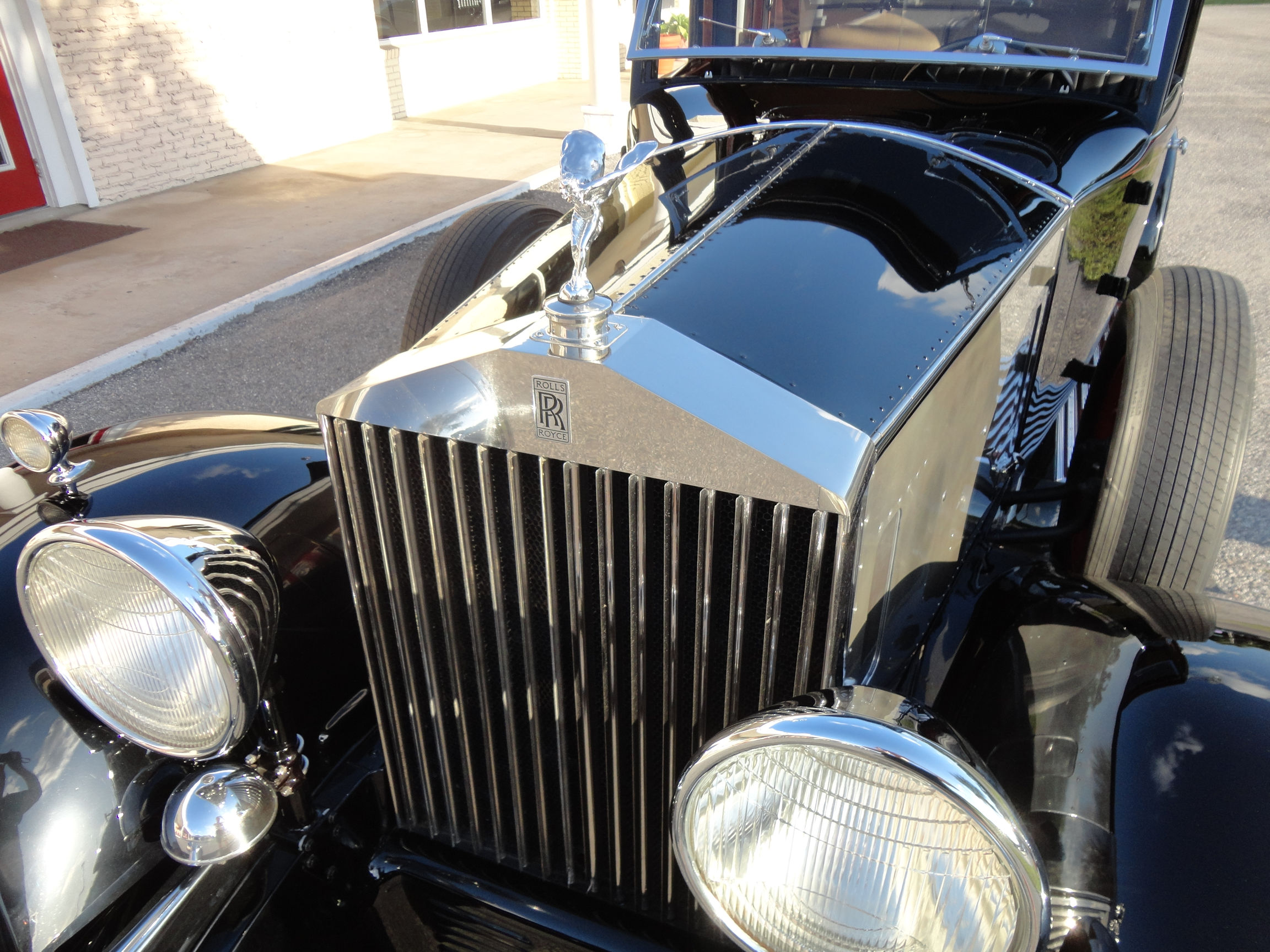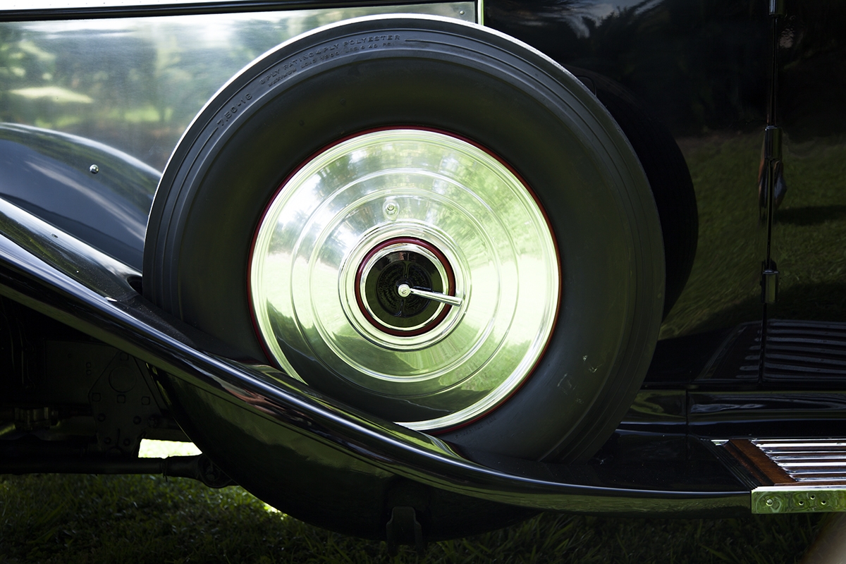 The car was listed for sale in the Flying Lady Classified in 1955 from a New York address. That photo shows the car in black with black wall tires and wheel discs.