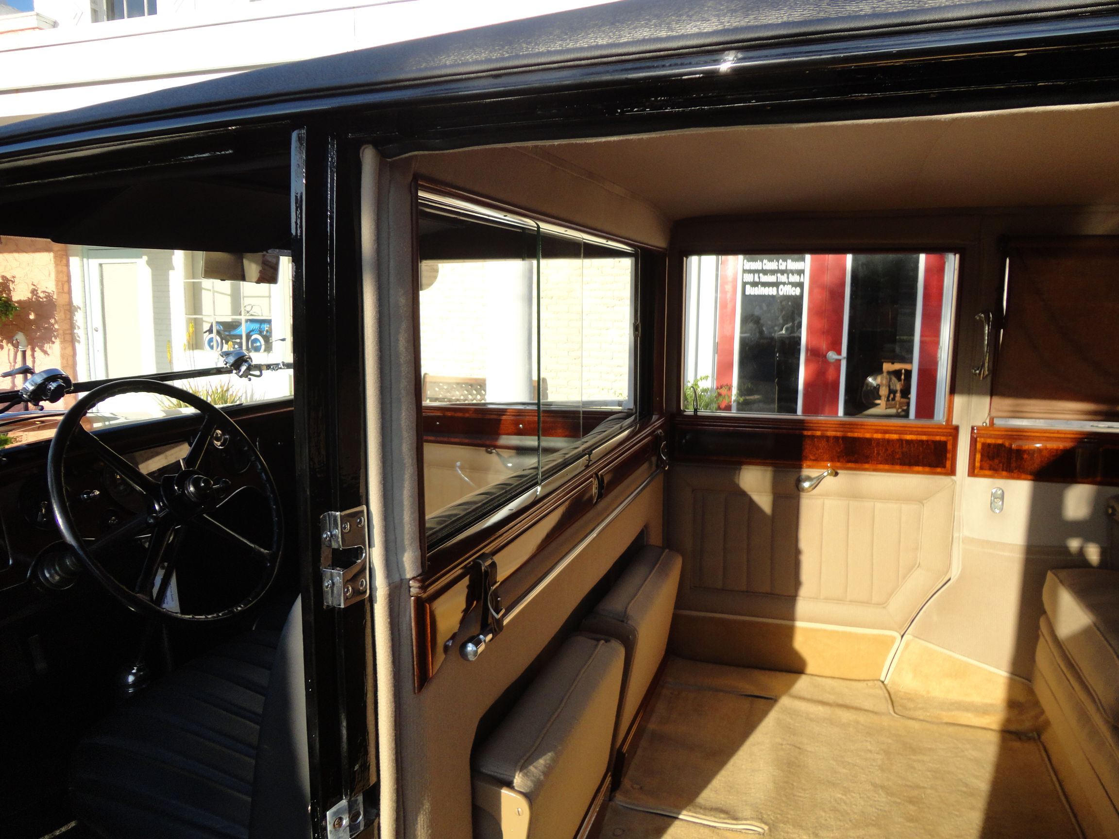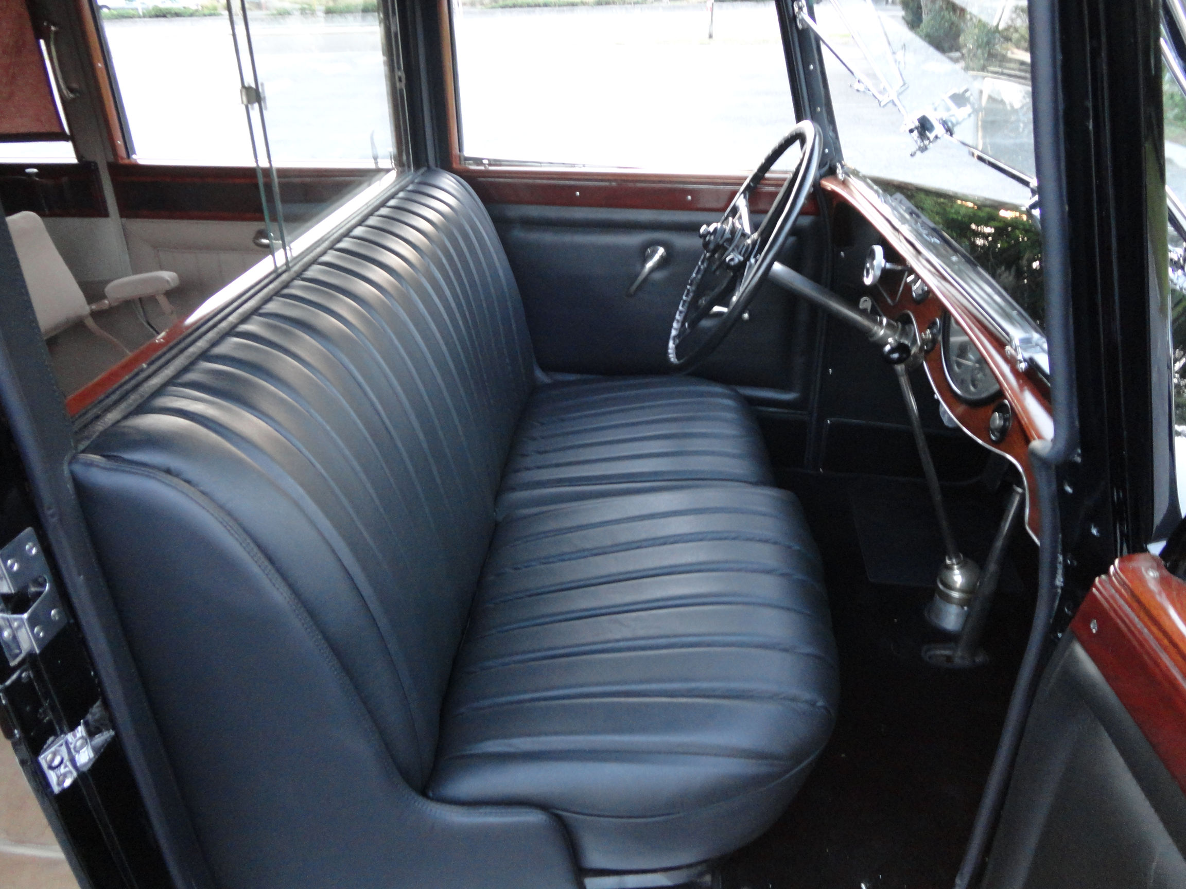 Black Leather Drivers Compartment, Beige West of England Wool Interior