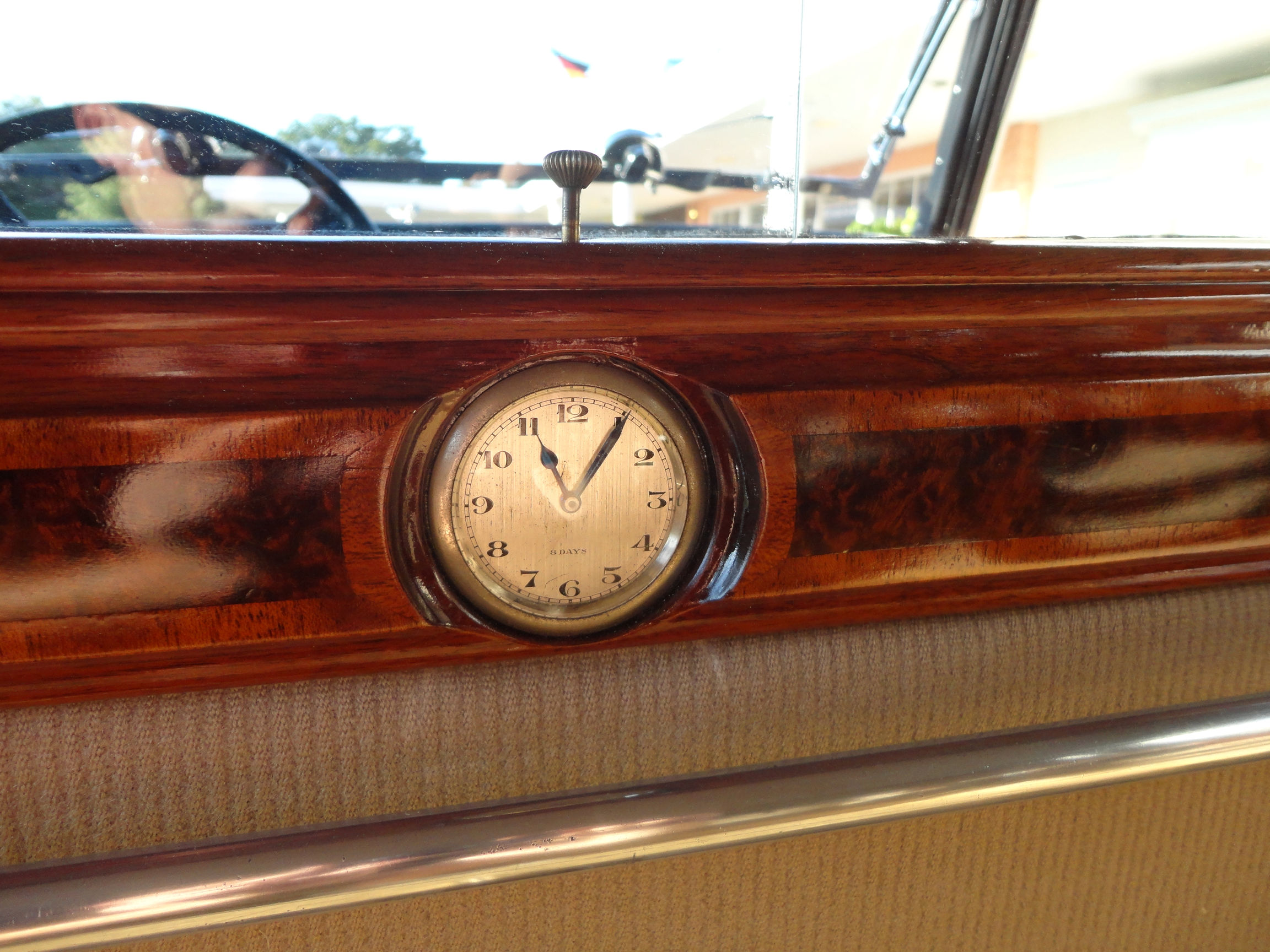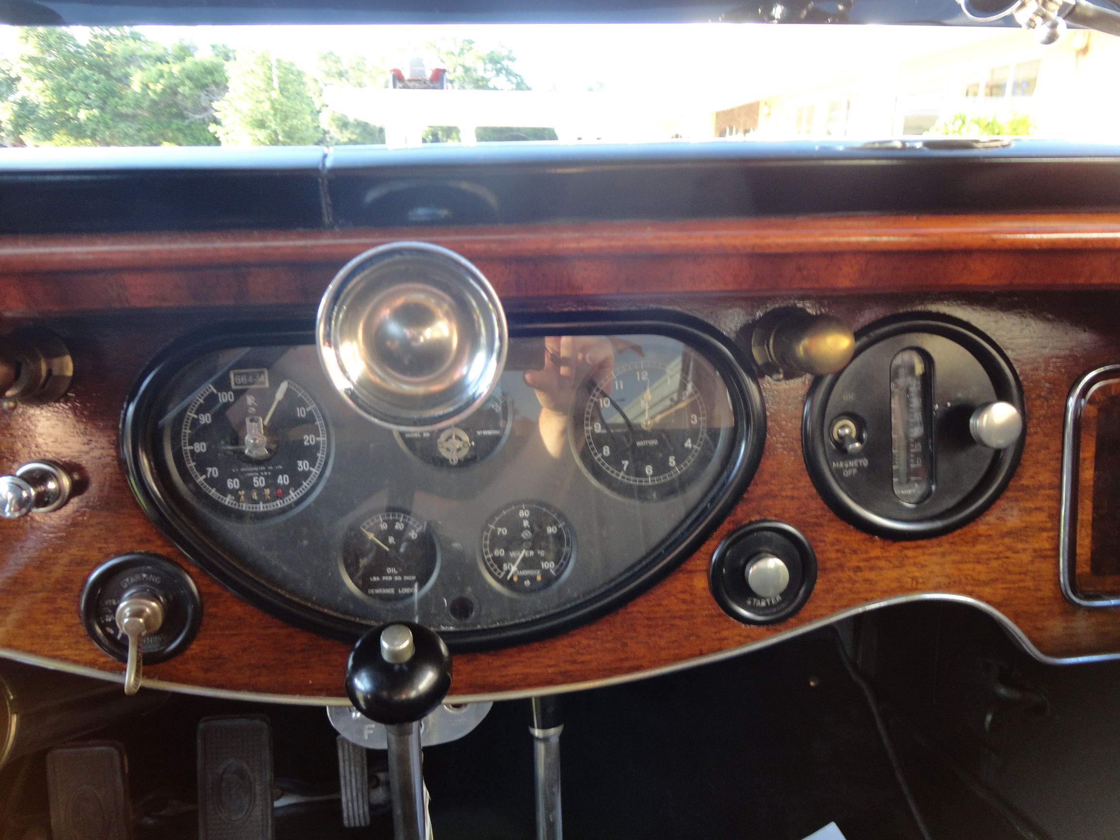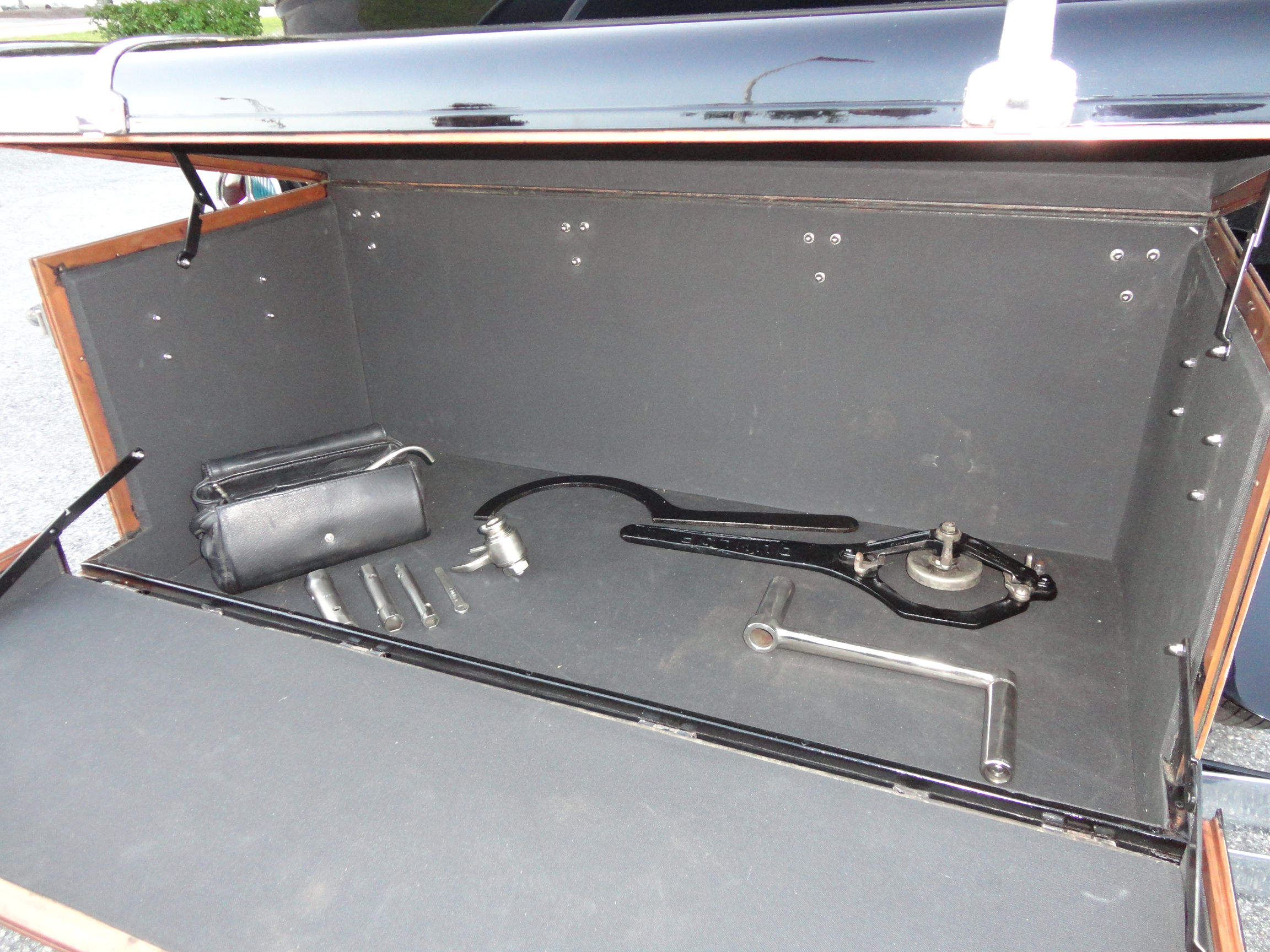During the summer of 2011, Recent service included valve adjustment replacing the electrical fuel pump system and cleaning and repairing the original starter. The autovac unit has been cleaned, repainted and reinstalled. However fuel is delivered through the electrical pump system. The motor compartment has been painstakingly cleaned and detailed. After removing old cylinder block paint, we discovered the motor number E55B on both cylinder blocks, crankcase, motor mounts, steering box, starting card, and several other parts.
