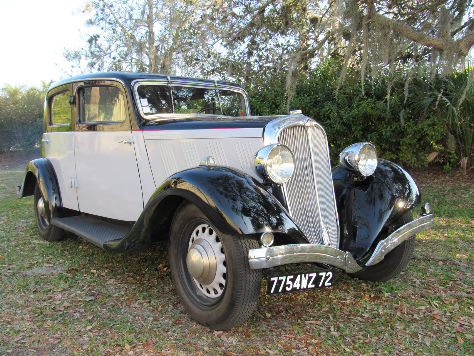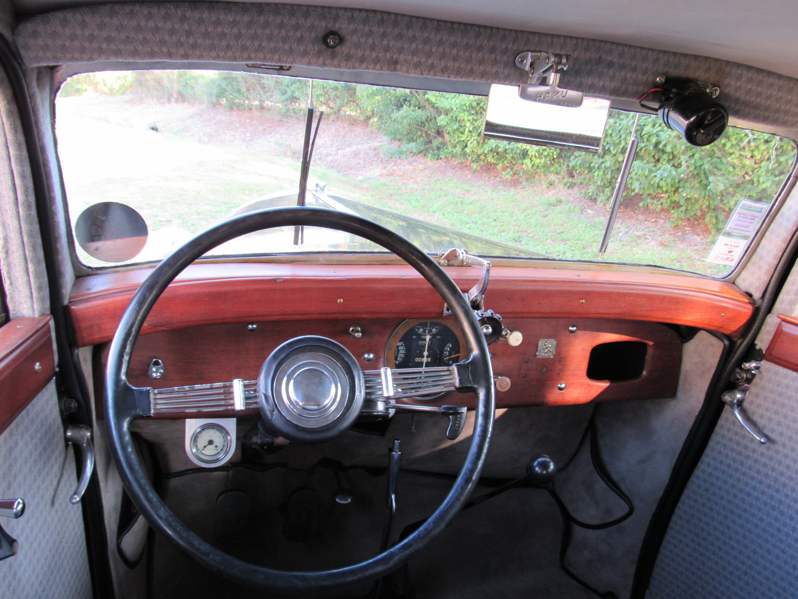 This 1934 Delahaye 134 Sedan by the coachbuilder Sical is a fine example of the French Art Deco era and represents French elegance at its best. This automobile is a slightly smaller version of the model 135, and about 900 were produced in total. This Delahaye 134 spent much of its life on an estate in the Sarthe/LeMans Arondissement of France. It was sympathetically restored cosmetically in 1997 and has been mechanically overhauled more recently. In 2014 this automobile was sold out of France and came to America via a classic car dealer in Surry, England. This Delahaye 134 is in very good condition throughout and is a joy to drive as it handles surprisingly well on the road. Significantly, this example features the very rare left hand rive. The paint is holding up very well with a certain patina, and the interior is in the beautiful French Saloon style and in wonderful condition. Original Aerolux Marchal headlights and other period correct fittings are as they should be. Everything works, and this very rare and beautiful pre-war French automobile is ready for its next Concours or Rally event.