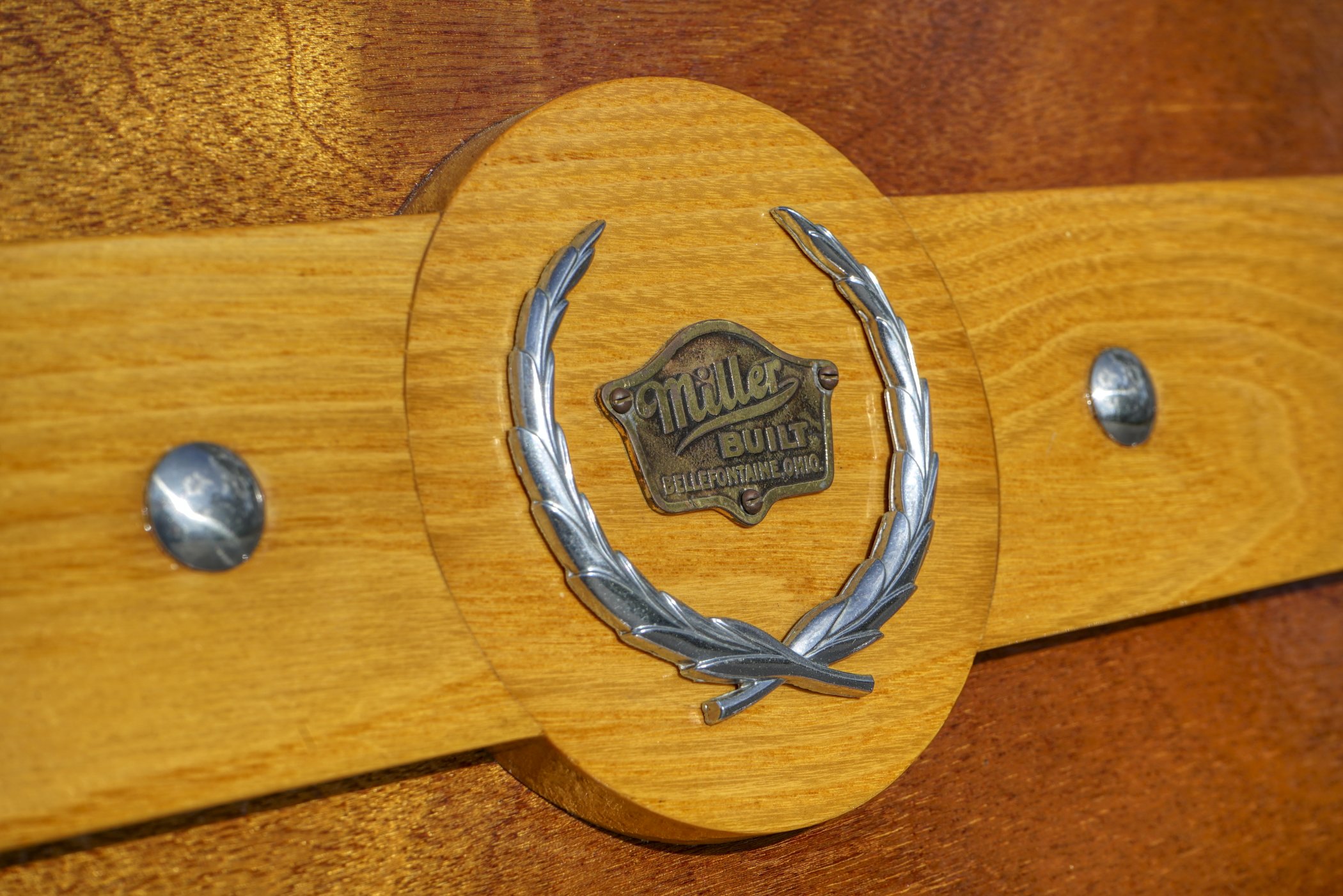 Custom designed wood sided Nomad Style 2-door body with chopped and lowered 1957 Chevrolet Station Wagon top fitted to a 1947 shortened (29″) Miller Ambulance frame with artfully crafted 2-door metal coachwork featuring Ash & Mahogany wood body paneling and wagon door opening upper & lower rear door. Rear fenders, taillights and gas door are provided from a 1948-49 Cadillac.