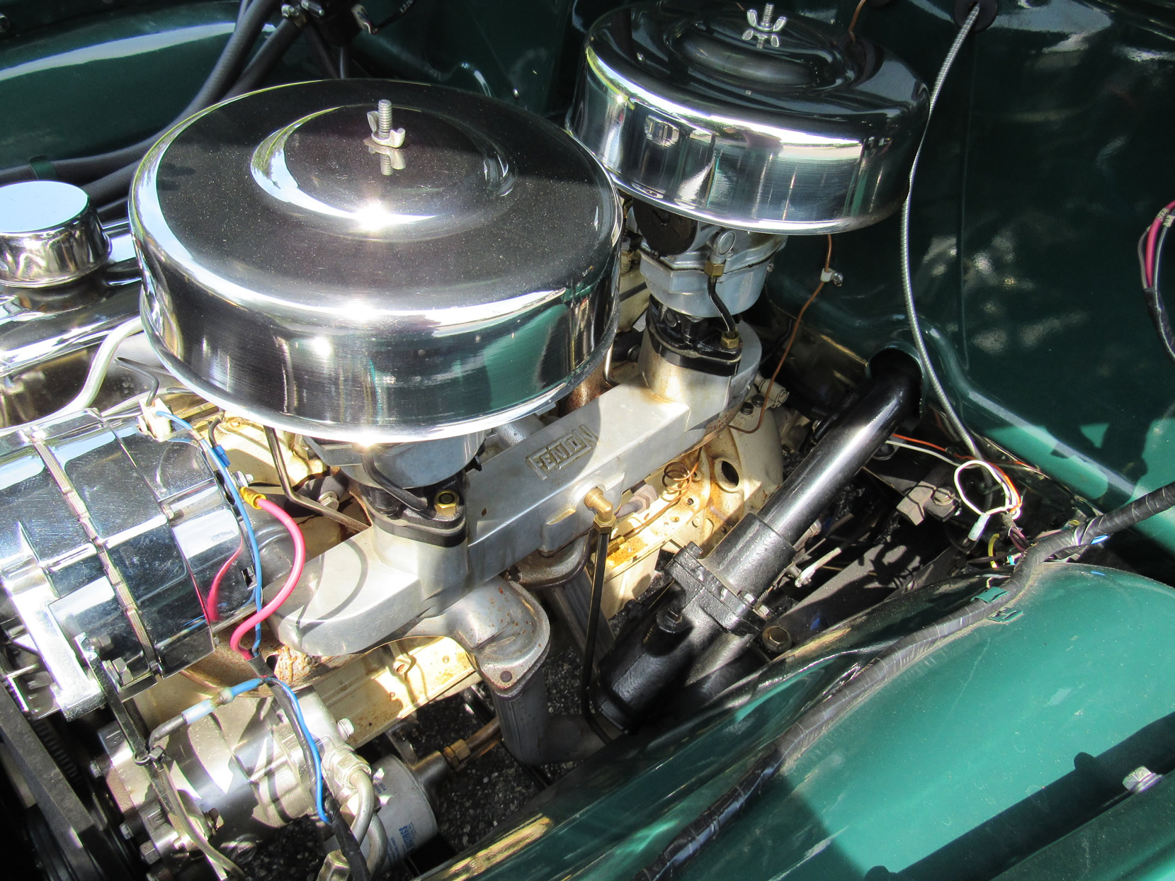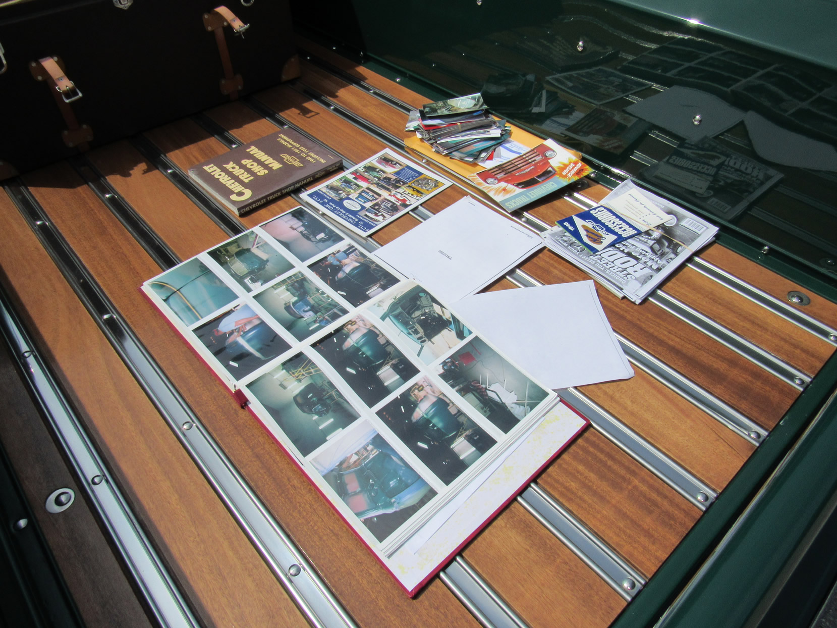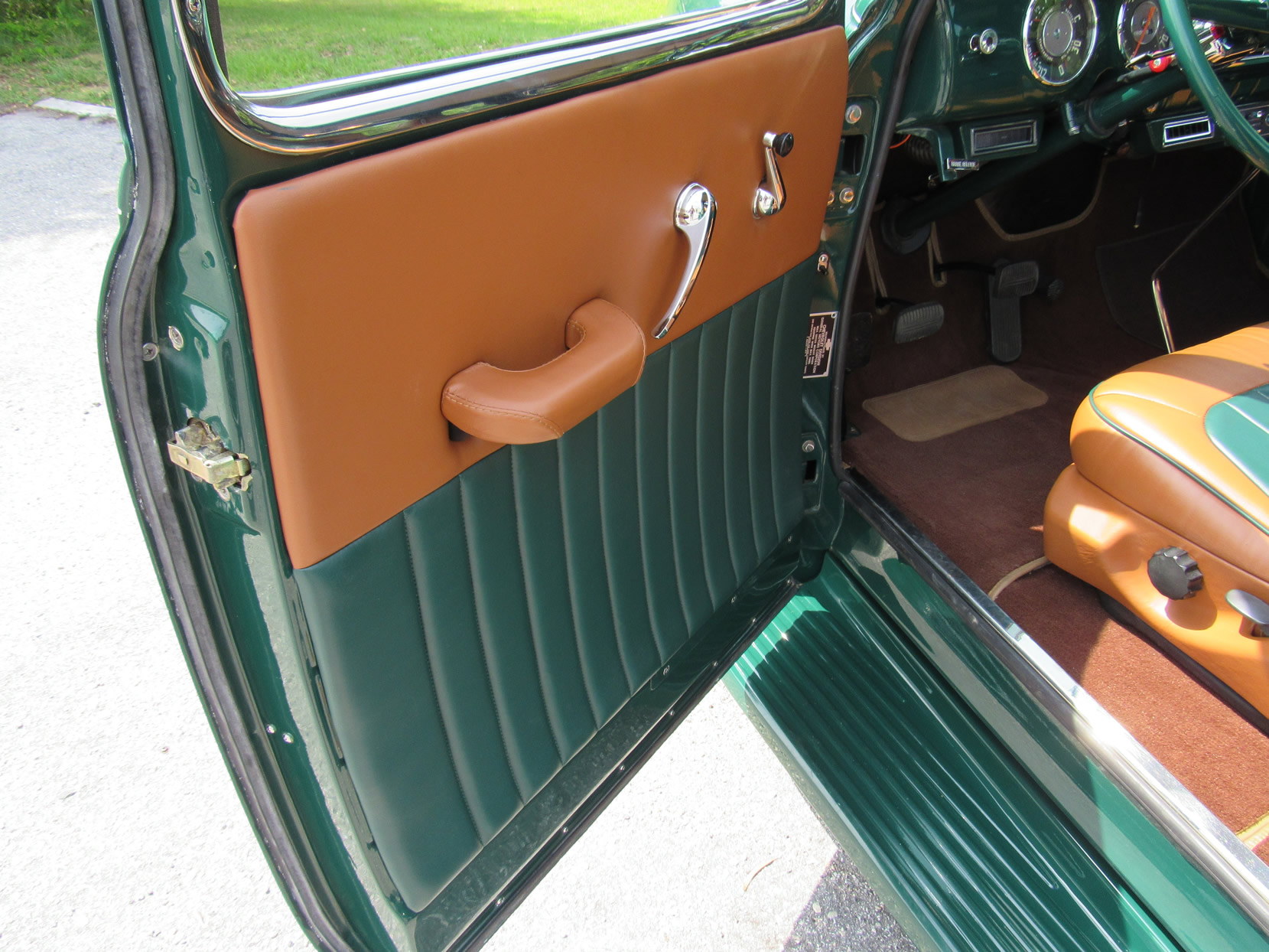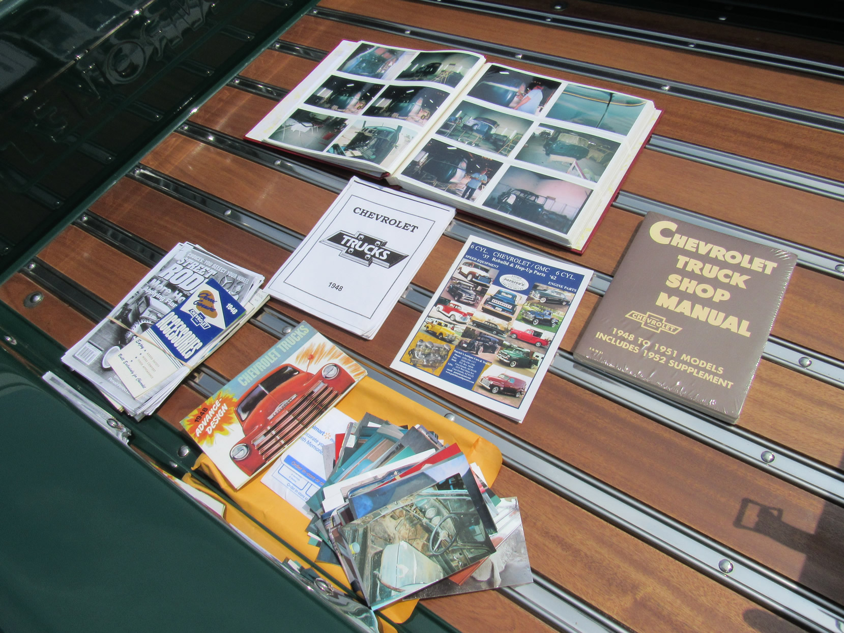 This 1948 5-window truck is a high-quality, frame-0ff restoration with upgrades in power and comfort and has been lowered 2”. It is powered by the 261ci 6-cylinder engine with a Fenton 2-carb intake and a Fenton split exhaust manifold plus a Saginaw 4-speed transmission. This truck also features power front disc brakes. The dark green paint with a small cream pin stripe around the belt line makes for an outstanding look. Moving to the bed you will find a highly polished mahogany wood floor with polished stainless divider strips. The bed also features a super nice leather storage trunk with a cover. The interior is breath taking with high quality green and dark tan high back bucket seats from a Ford Expedition with a console, cupholder and fold down inner arm rests. Interior features also includes professionally installed modern 134a air conditioning and heater unit, radio and 3-point seat belts. This great example has been converted to a 12-volt electrical system. It comes with extensive photos of the restoration and has just 2,500 miles on it since restoration was completed in 2015. Jump in this truck and go have hours of driving fun.