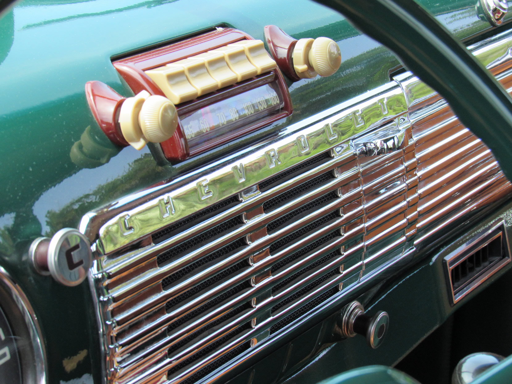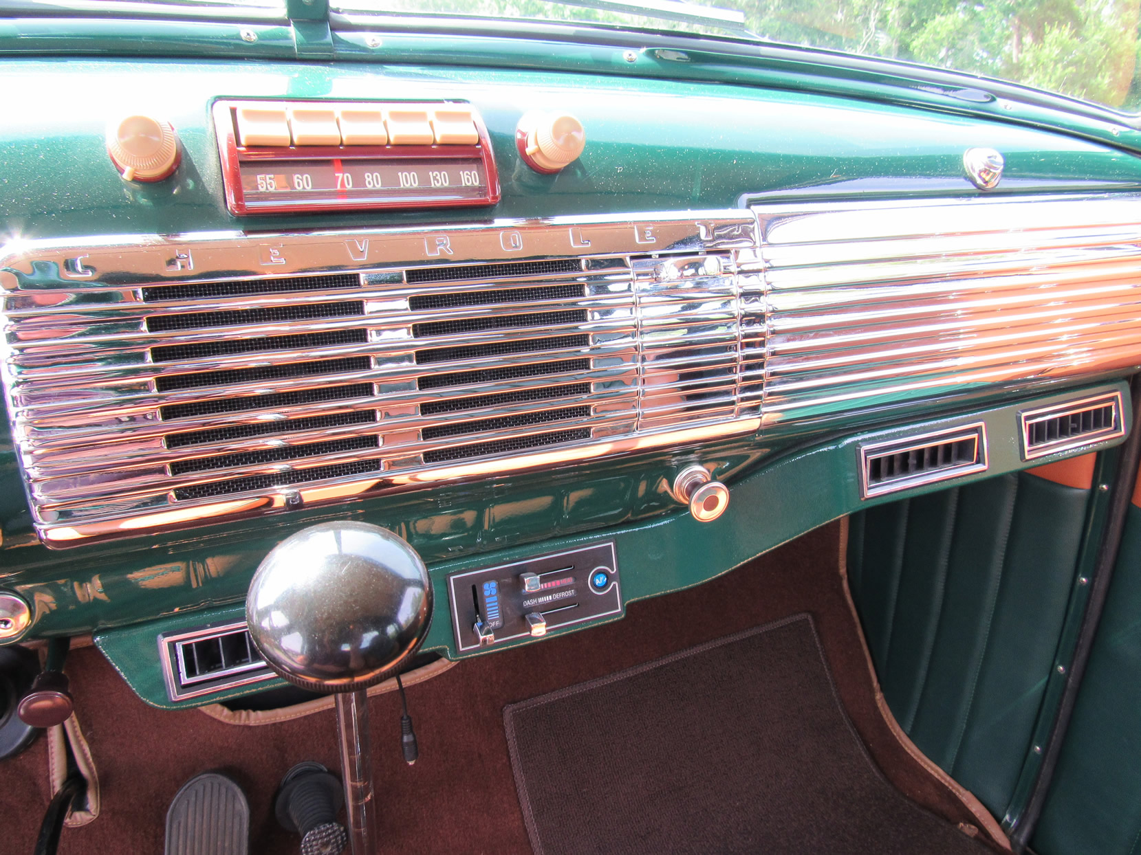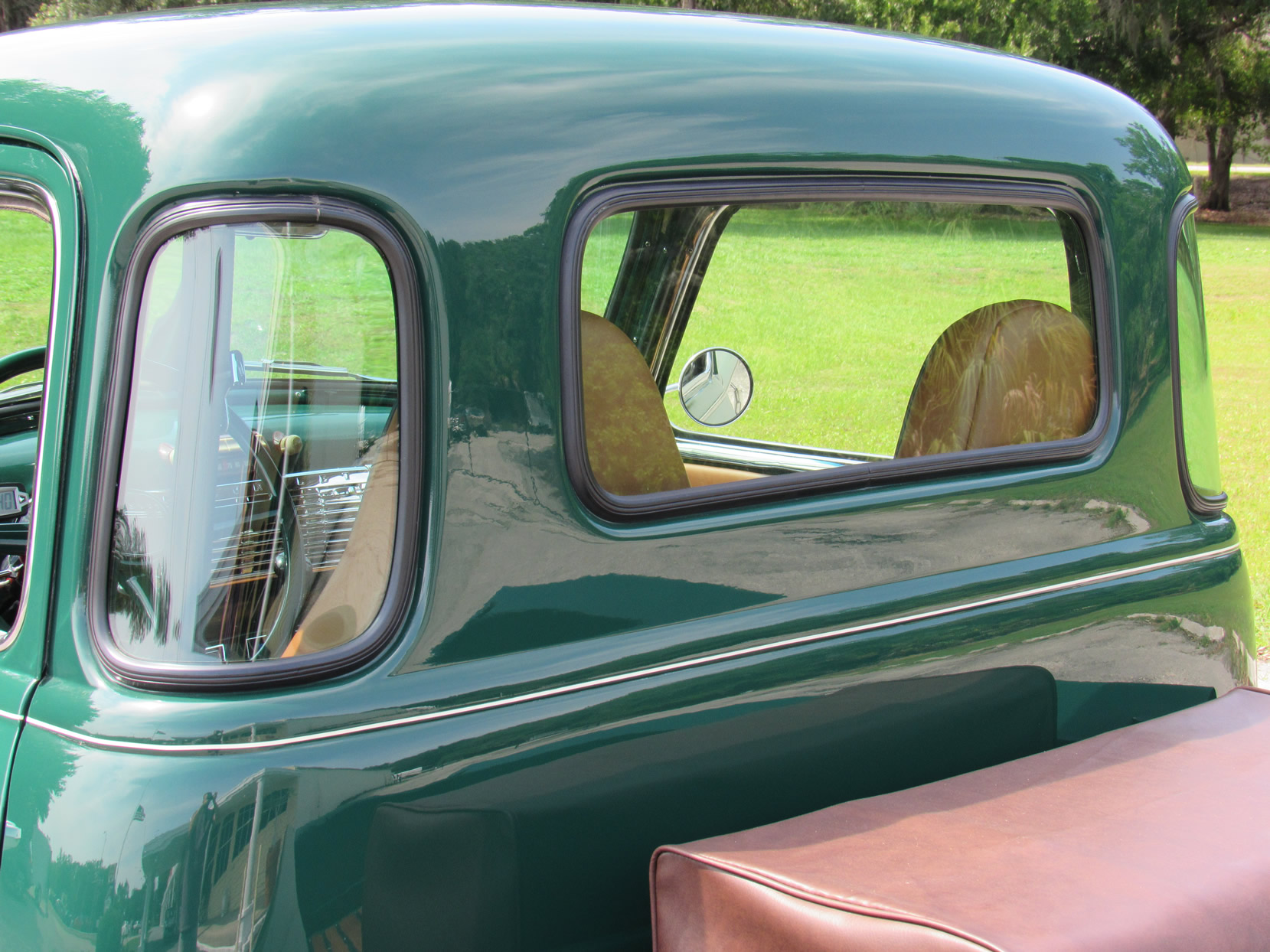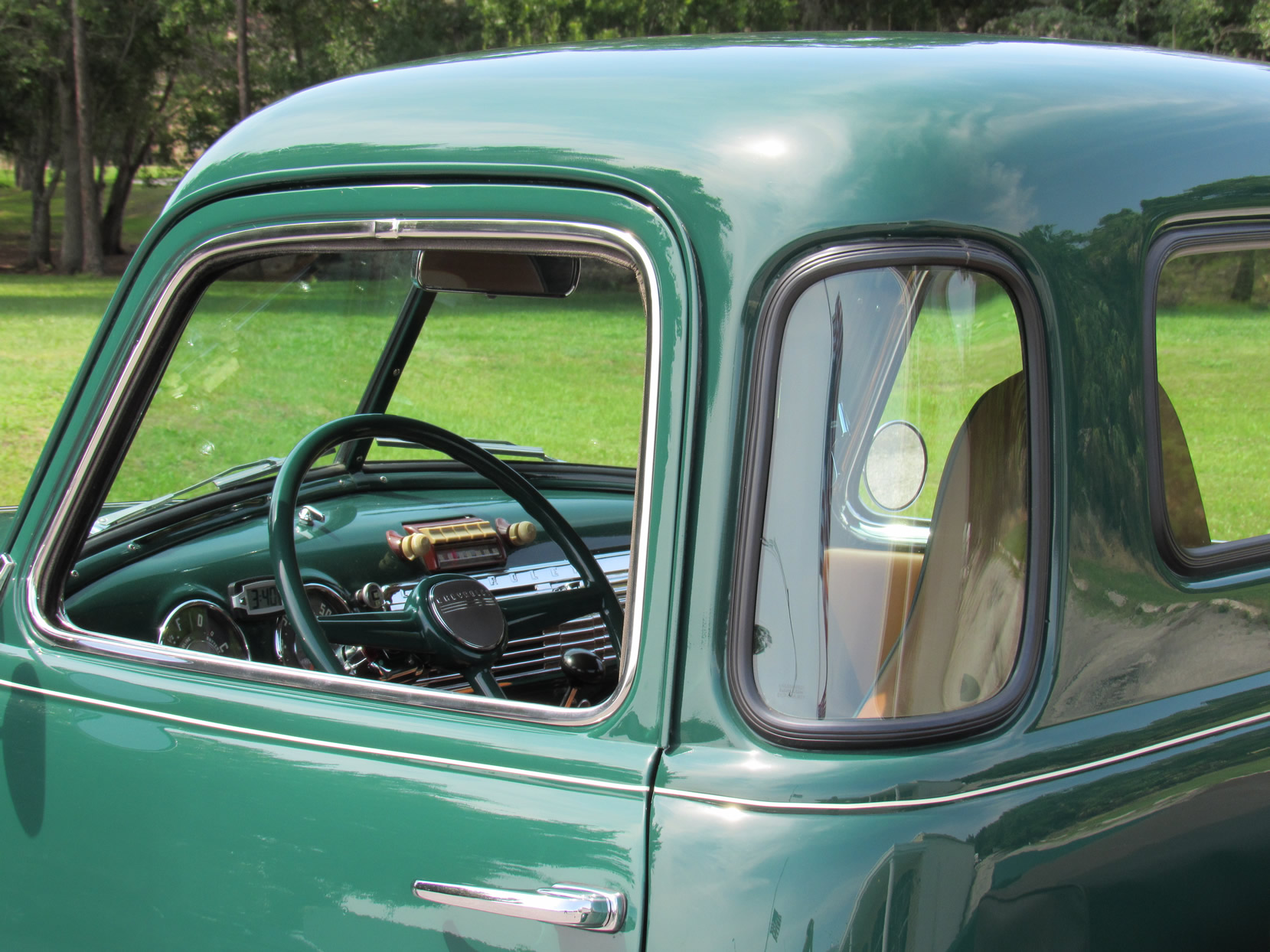 Chevrolet recognized that its trucks had to be more than workhorses, but also comfortable vehicles to drive. The automaker also recognized that the truck was no longer just a farm truck, but also driven as suburban transportation, with a greater number of women getting behind the wheel. Chevrolet marketed the truck with a new postwar approach. Chevy expanded the glass area of the 1947 models by 22 percent over the prewar designs. It also developed a new safety-glass technology. For the five-window Deluxe Cab models, Chevy marketed the feature as “Nu-Vue Rear-Corner Windows.” These rear quarter-panel windows curved with the contour of the cab to eliminate the blind spot. Stylists finished all the windows with stainless steel trim.