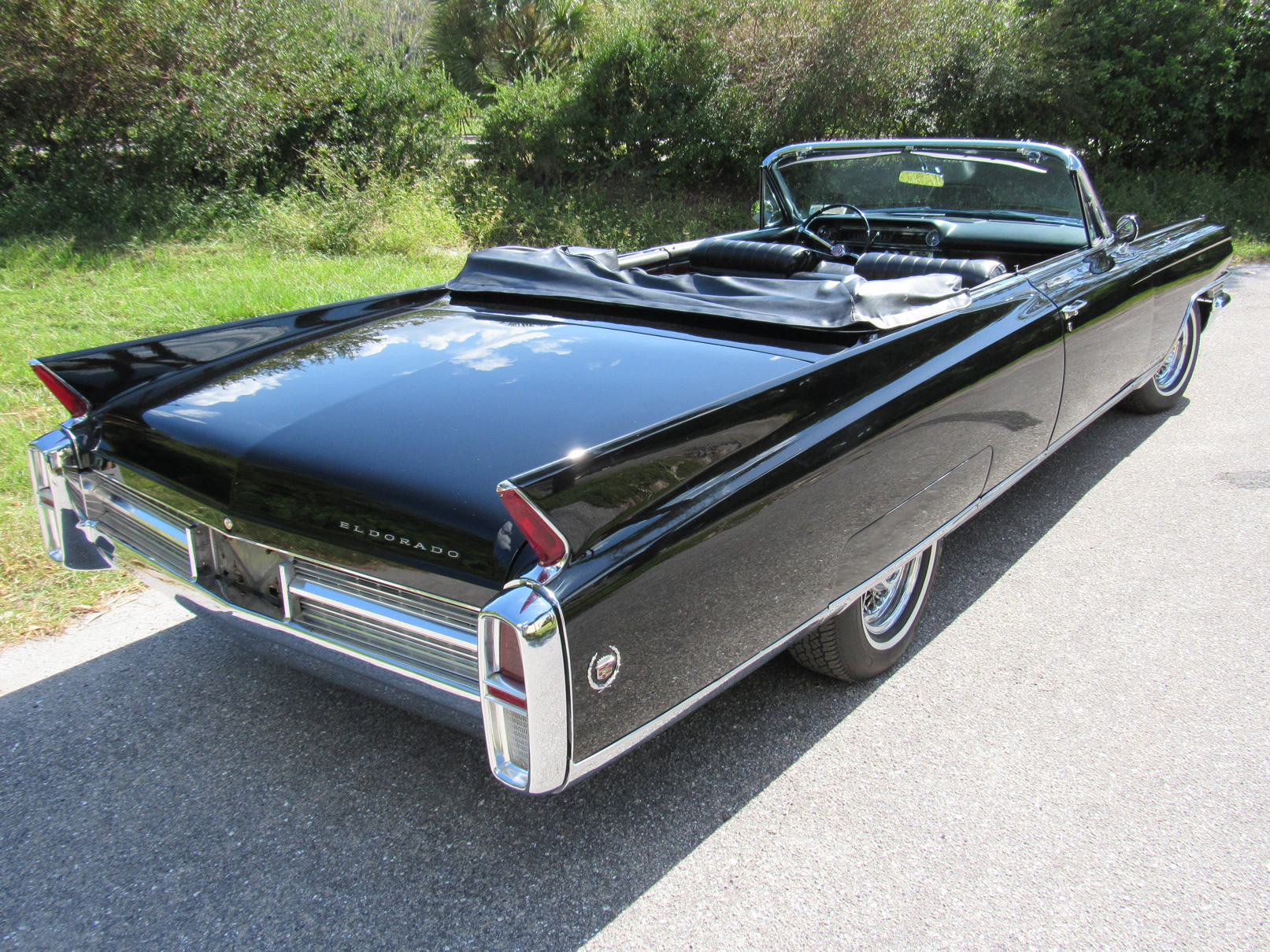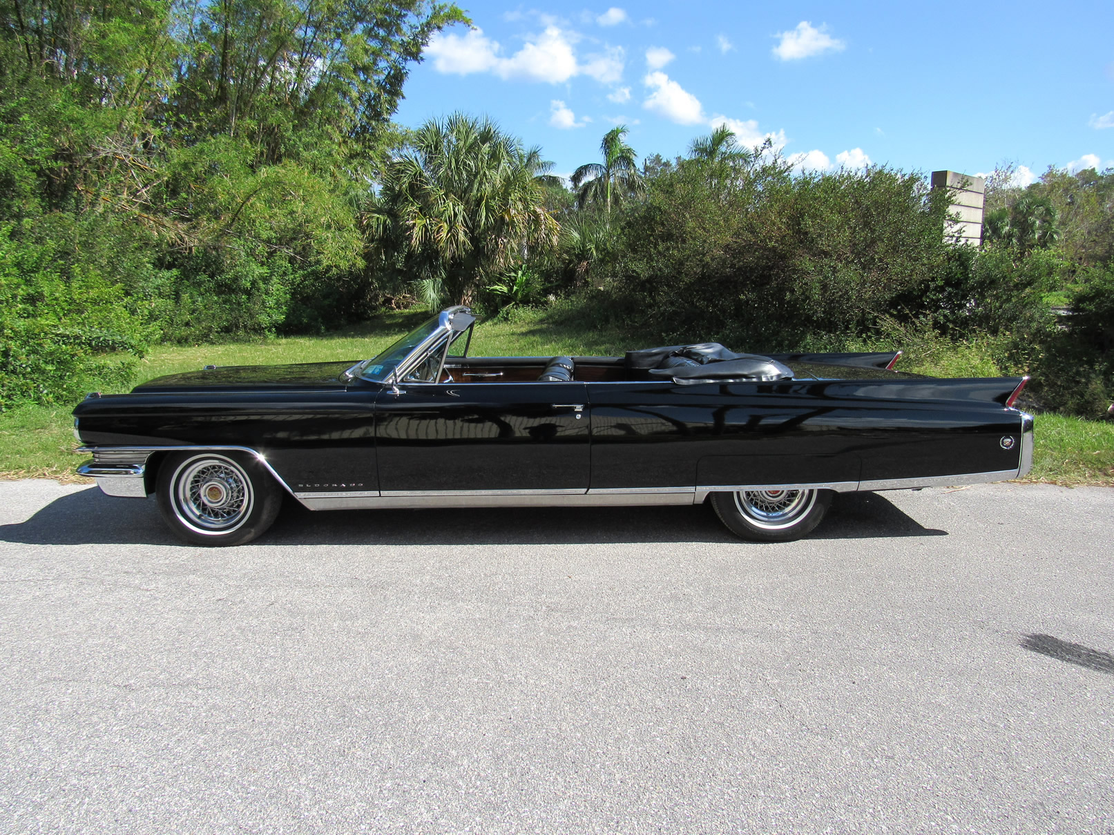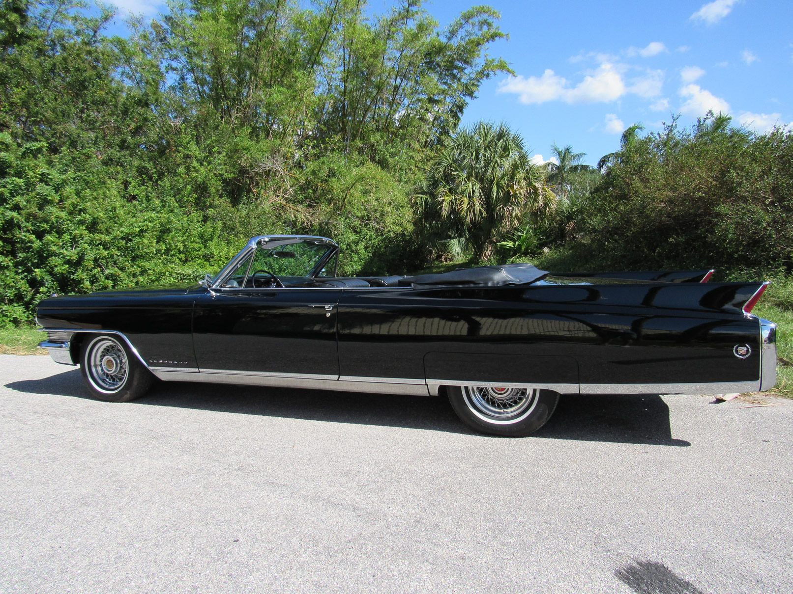 Beautifully painted and trimmed in all black, this Eldorado has the perfect look. With recepits for the restoration work over a number of years this car is well documented and would make a terrific cruiser. The original 390 V8 runs smoothly and powerfully. Equipped with factory A/C, power windows, power brakes, power steering, and upgraded internals for the radio including trunk mounted CD unit, this well equipped Cadillac makes using it nice and pleasurable. The wire wheels add a nice touch and really give the car a sharper look. The power convertible top functions as it should as do all the windows. The underside is original and very clean. Please feel free to contact us with any questions.