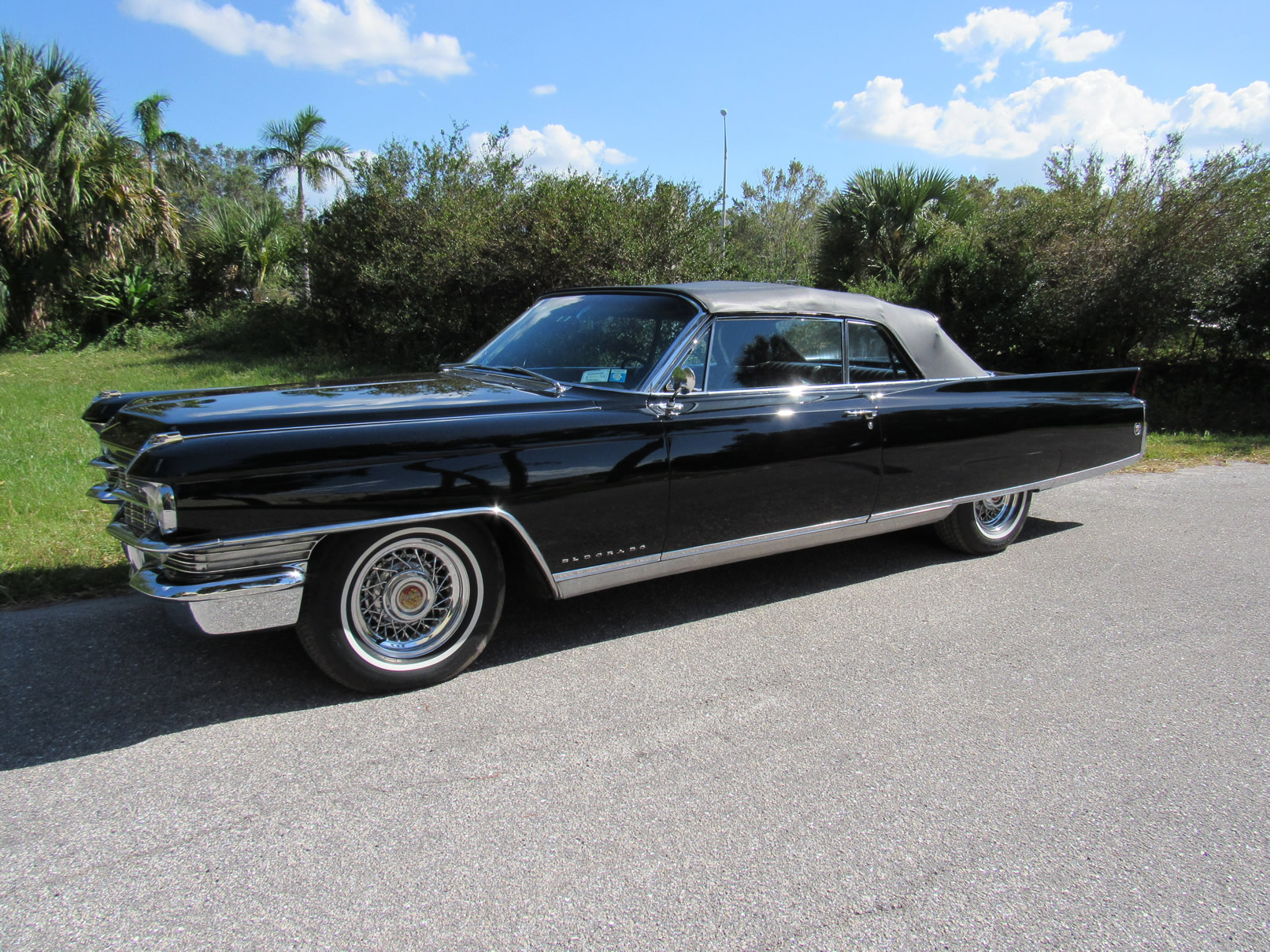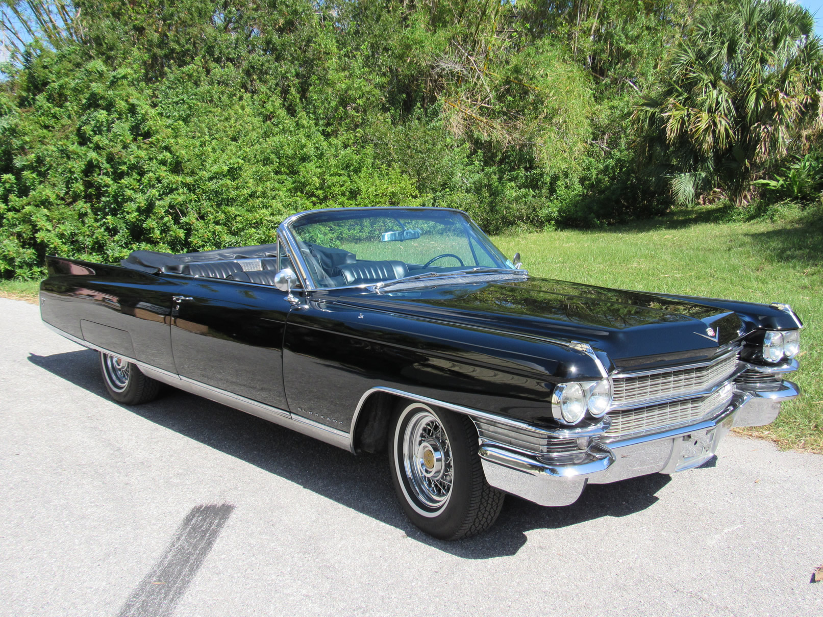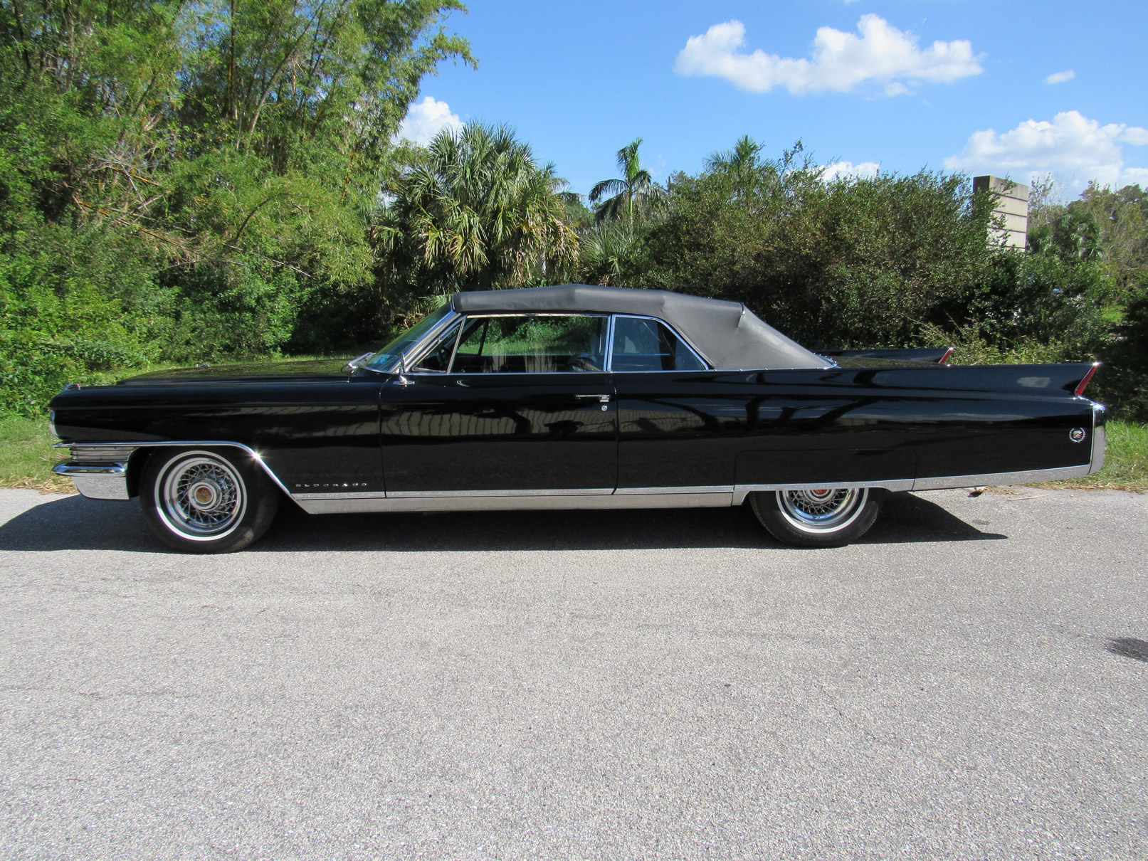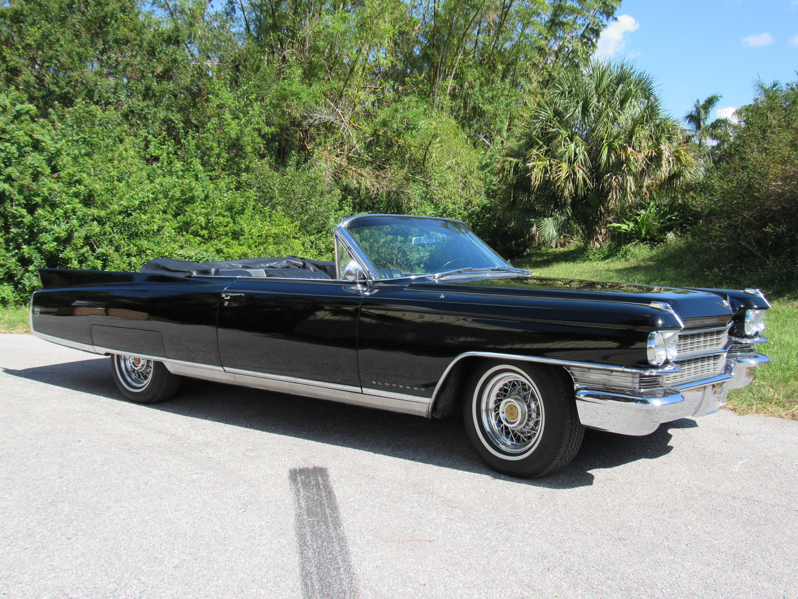 Beautifully painted and trimmed in all black, this Eldorado has the perfect look. With recepits for the restoration work over a number of years this car is well documented and would make a terrific cruiser. The original 390 V8 runs smoothly and powerfully. Equipped with factory A/C, power windows, power brakes, power steering, and upgraded internals for the radio including trunk mounted CD unit, this well equipped Cadillac makes using it nice and pleasurable. The wire wheels add a nice touch and really give the car a sharper look. The power convertible top functions as it should as do all the windows. The underside is original and very clean. Please feel free to contact us with any questions.