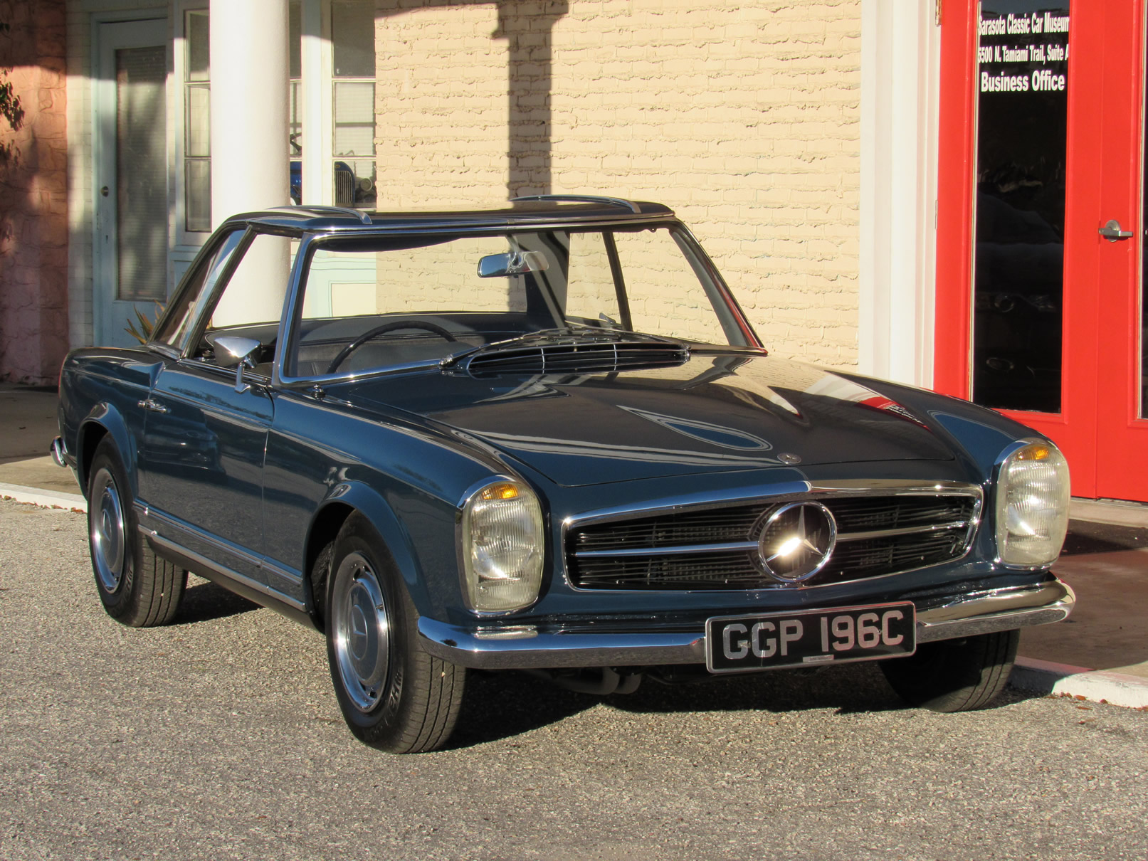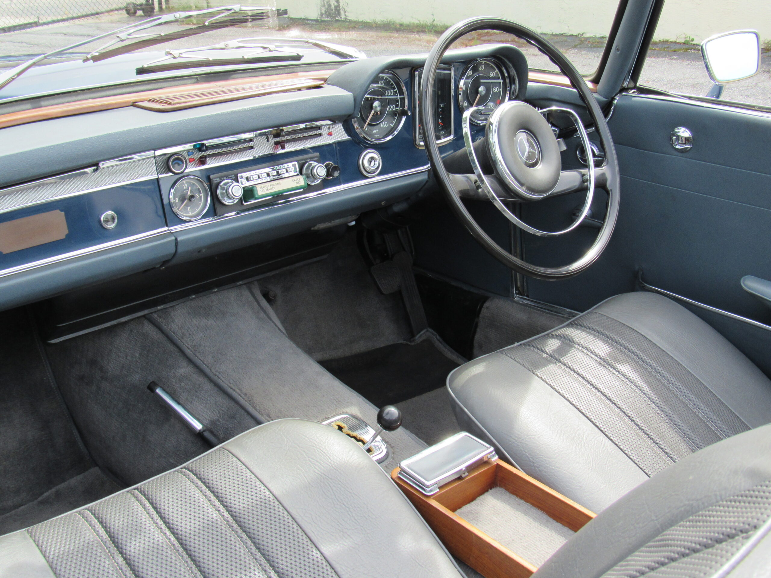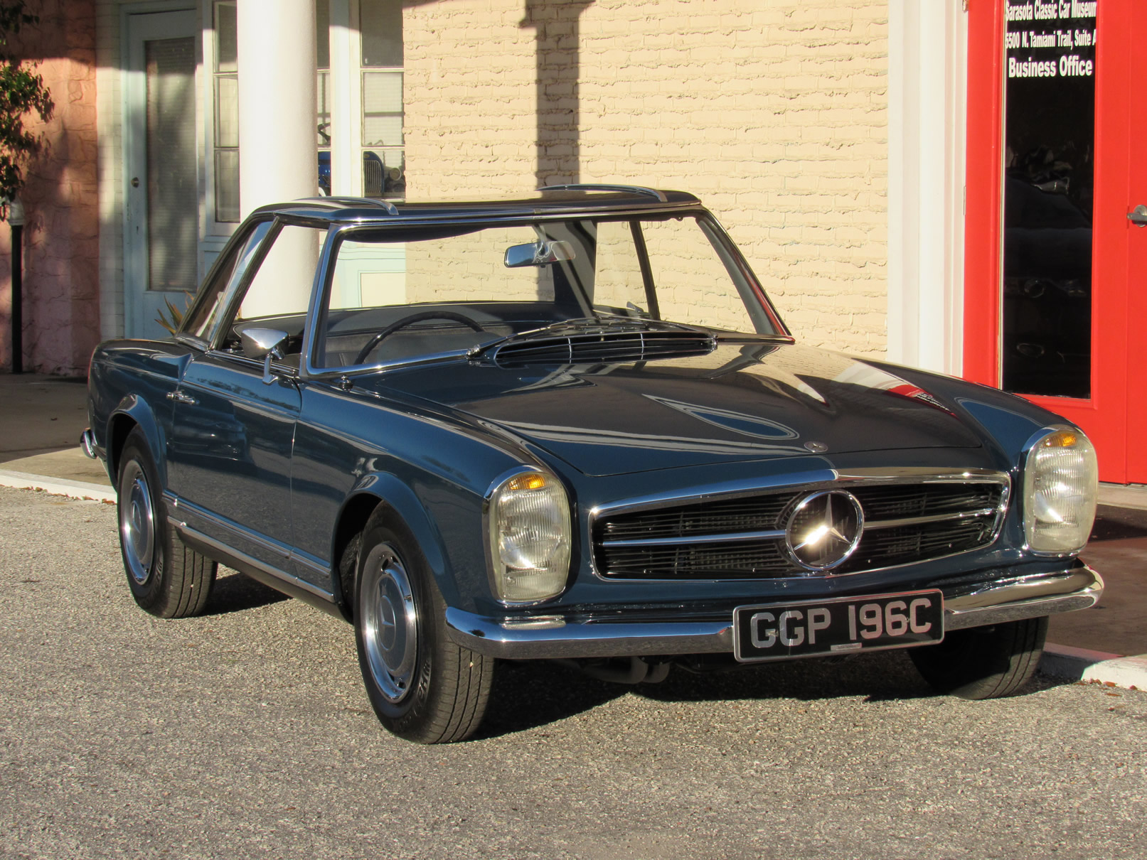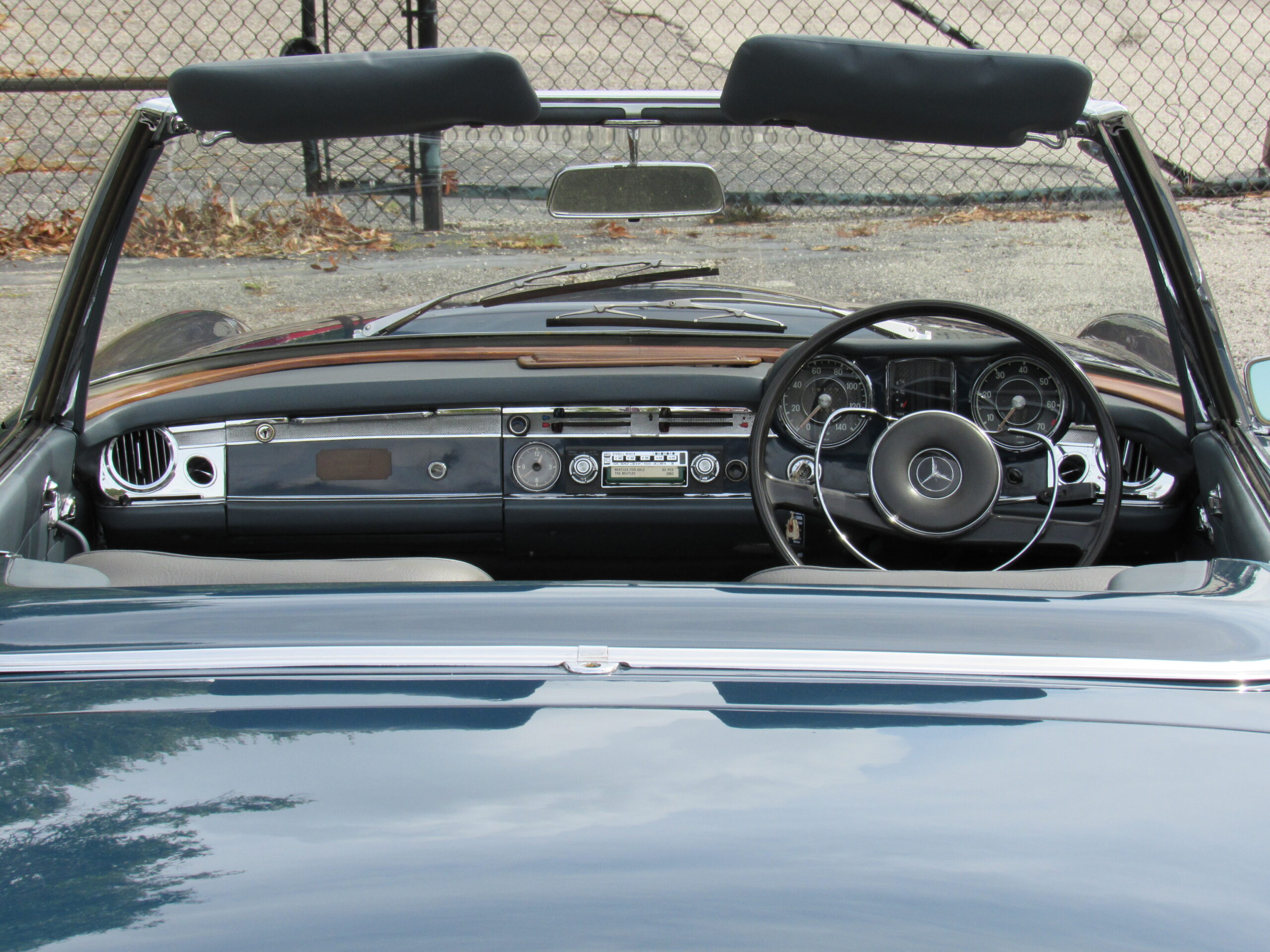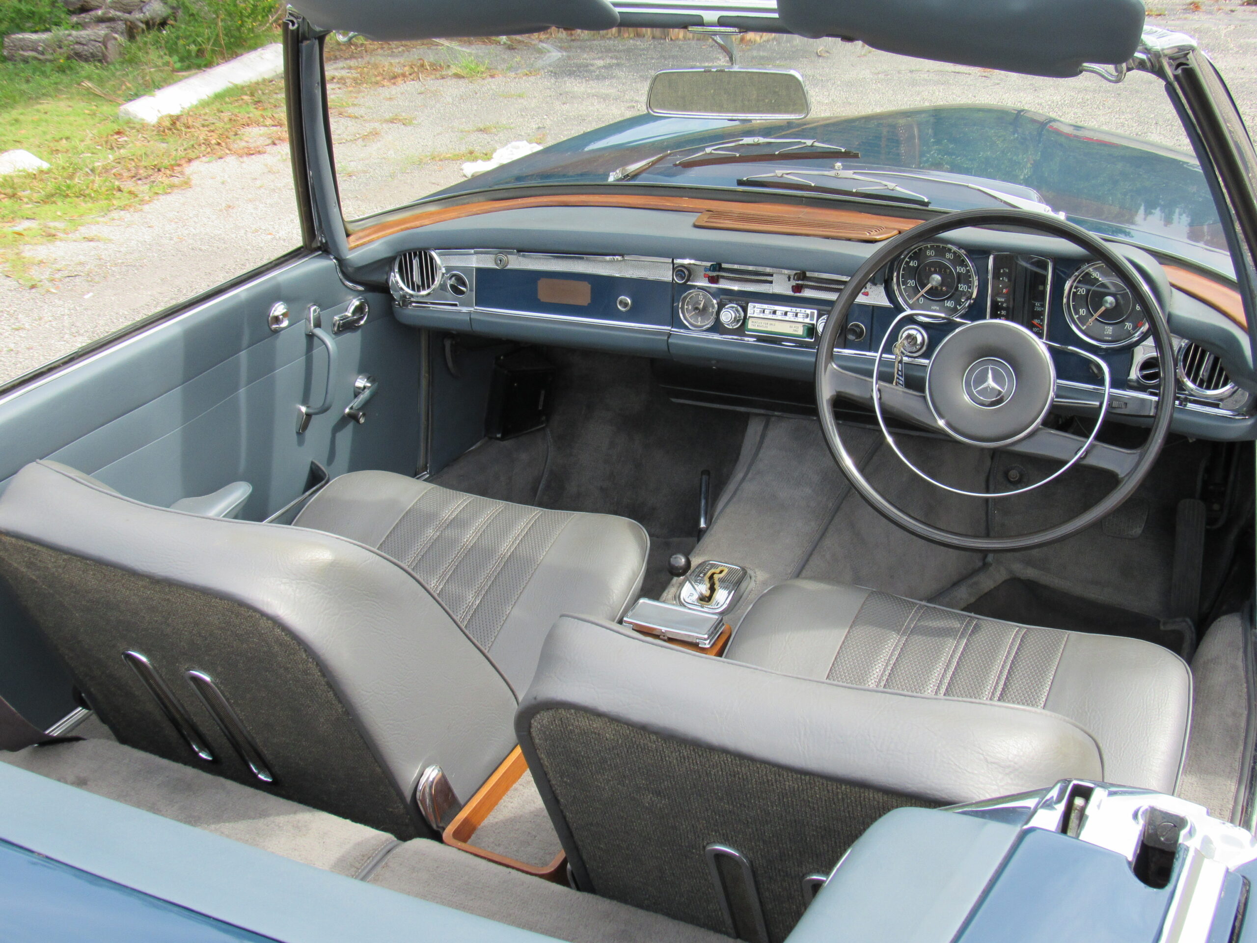 As offered, the car has been expertly reviewed and it is confirmed to retain the engine, chassis plate, transmission, and rear differential numbers matching those of the factory Data Card and it is confirmed as having been delivered new in its medium blue exterior color with grey interior, a grey soft top, and factory hardtop. Copies from the original logbook documents list John Winston Lennon, M.B.E. as the vehicle’s owner. The M.B.E. was the Queen’s Honorary Award and it was presented to The Beatles at Buckingham Palace in 1965. The address of 23 Albermarle, London was the mailing address for The Beatles, prior to their relocation to Savile Row under their Apple Records label name. The Mercedes is believed to have been sold by Lennon to a private couple in the Newmarket area and then to Mr. Howard Wise. It would then find its way to Peter Jarvis, the noted car dealer in Kent, who spotted the vehicle in the current museum display some time ago and recalled selling it to a gentleman in Cocoa Beach, Florida in the mid-1980s. Subsequently, the SL was sold to one Mr. Barnett in California who would later offer the car with it being acquired in 1999 by the current Florida museum owner.