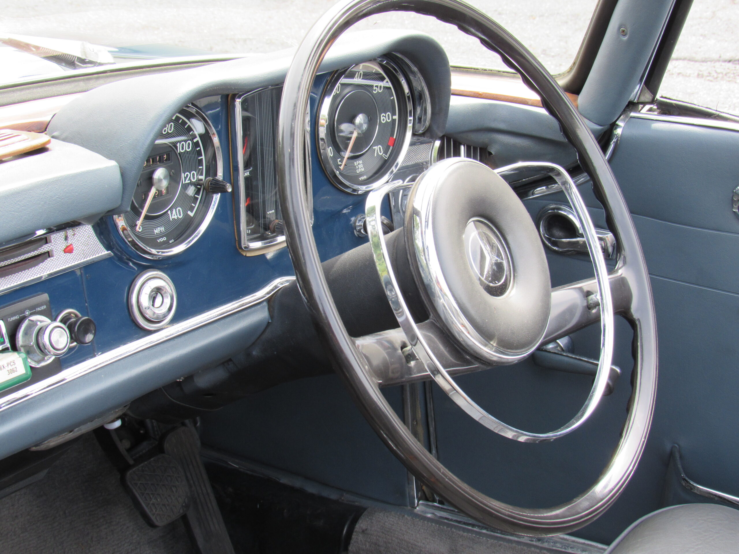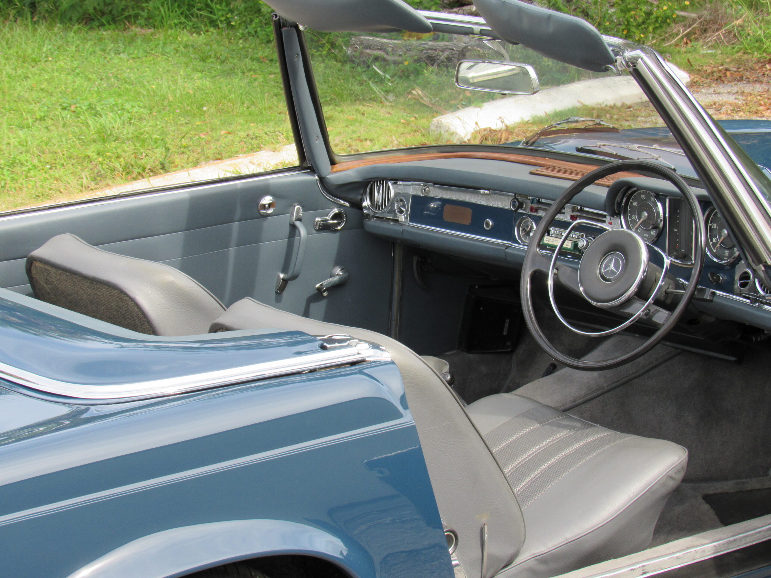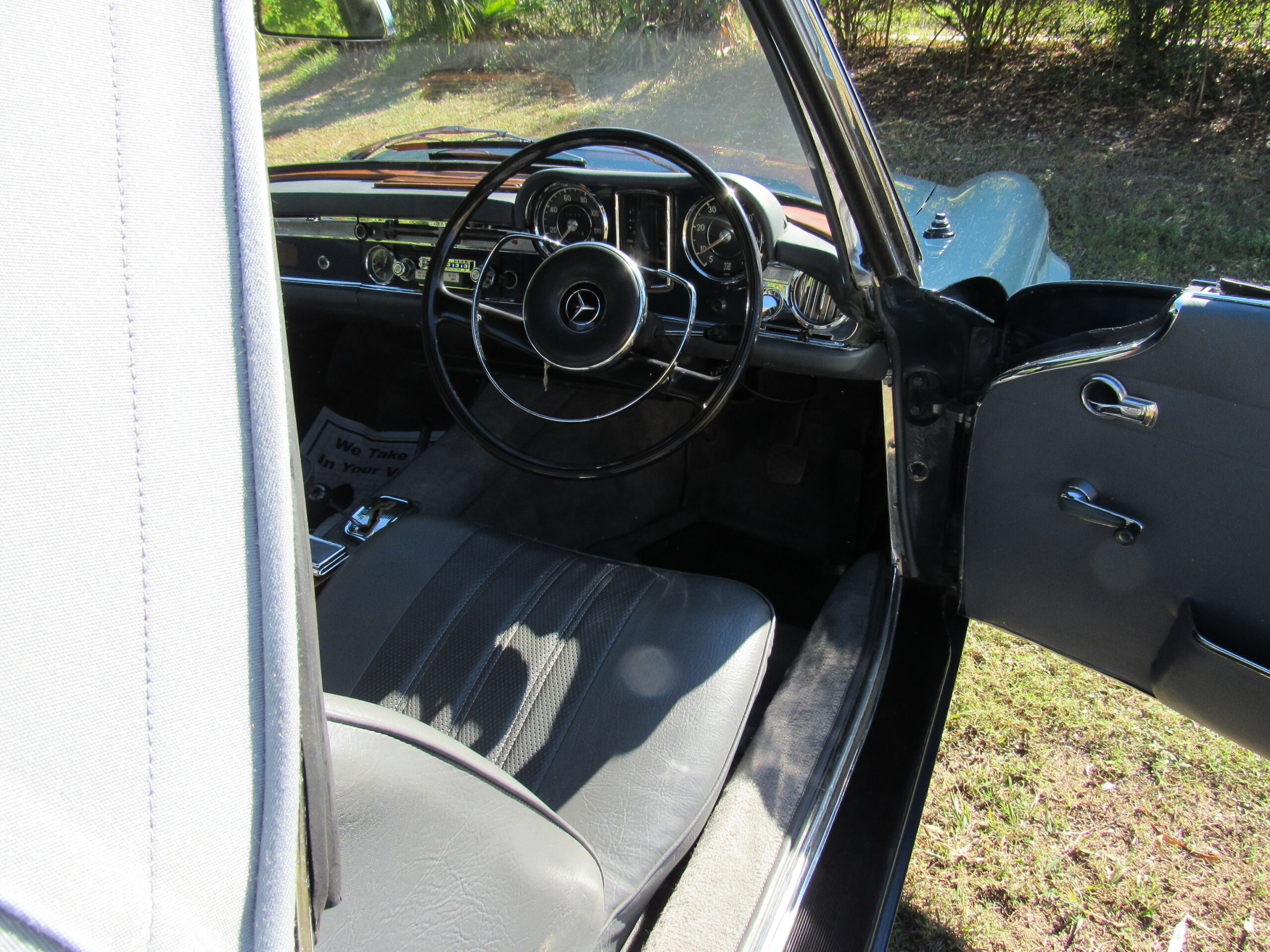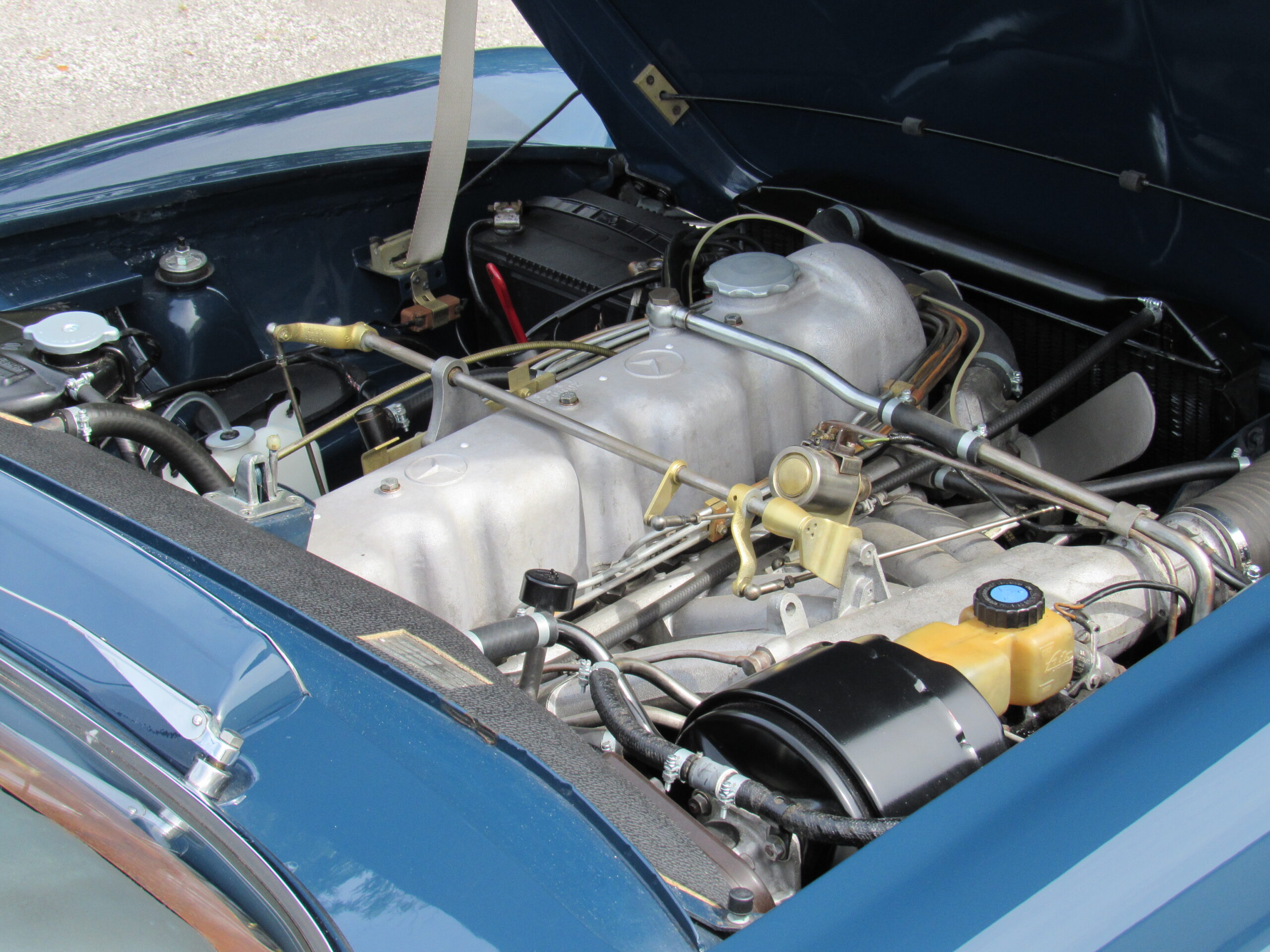 As offered, the car has been expertly reviewed and it is confirmed to retain the engine, chassis plate, transmission, and rear differential numbers matching those of the factory Data Card and it is confirmed as having been delivered new in its medium blue exterior color with grey interior, a grey soft top, and factory hardtop. Copies from the original logbook documents list John Winston Lennon, M.B.E. as the vehicle’s owner. The M.B.E. was the Queen’s Honorary Award and it was presented to The Beatles at Buckingham Palace in 1965. The address of 23 Albermarle, London was the mailing address for The Beatles, prior to their relocation to Savile Row under their Apple Records label name. The Mercedes is believed to have been sold by Lennon to a private couple in the Newmarket area and then to Mr. Howard Wise. It would then find its way to Peter Jarvis, the noted car dealer in Kent, who spotted the vehicle in the current museum display some time ago and recalled selling it to a gentleman in Cocoa Beach, Florida in the mid-1980s. Subsequently, the SL was sold to one Mr. Barnett in California who would later offer the car with it being acquired in 1999 by the current Florida museum owner.