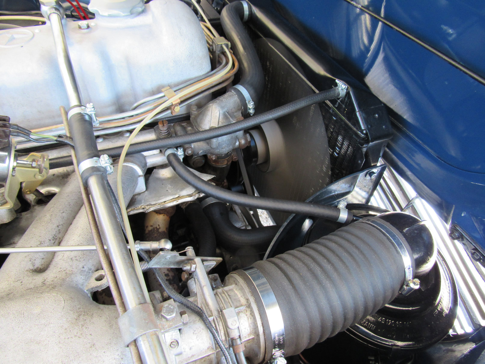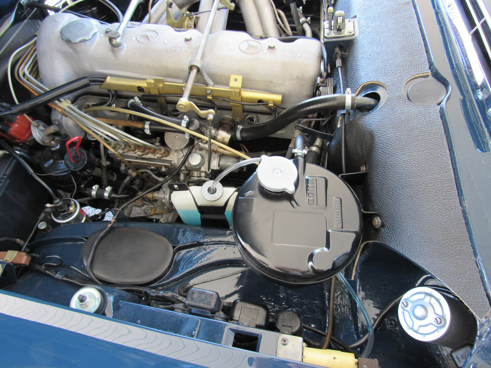 2,308 cc SOHC inline six-cylinder engine, 170 HP (SAE rating), Bosch mechanical fuel injection, four-speed automatic transmission, fully independent suspension with front wishbones and coil springs, and anti-sway bar, rear low-pivot swing axle, trailing arms, coil springs, and compensating spring, and hydraulic front disc and rear drum brakes, and brand new stainless steel exhaust system; wheelbase: 94.5.