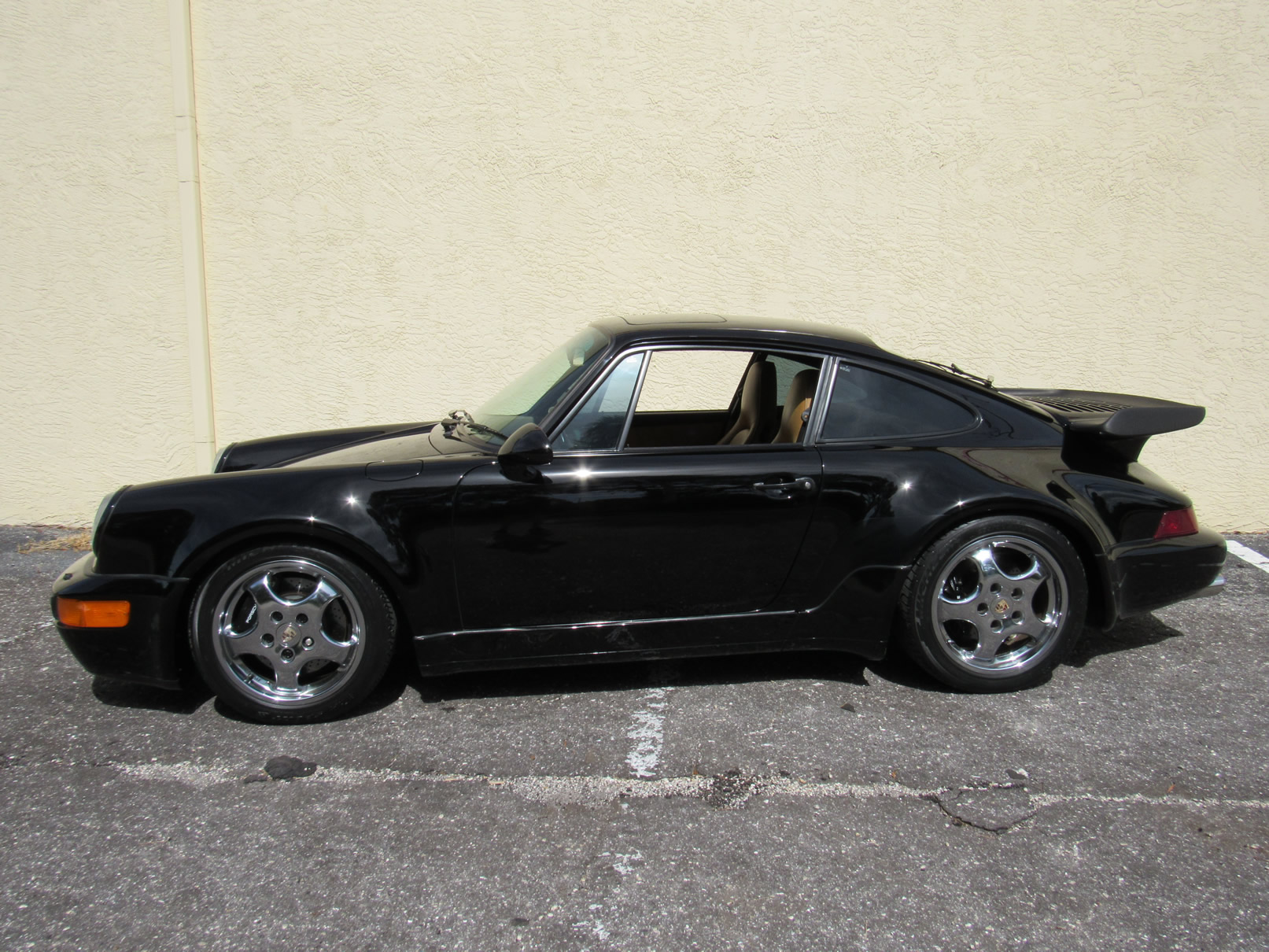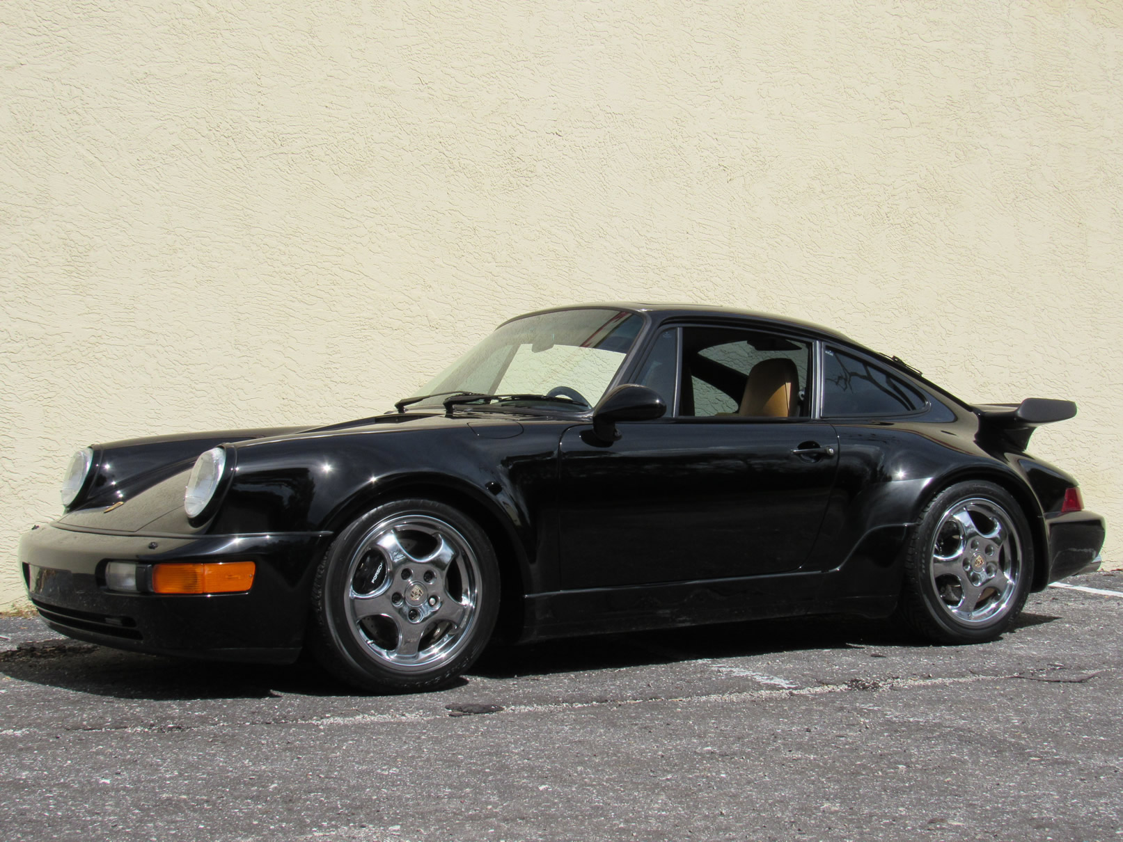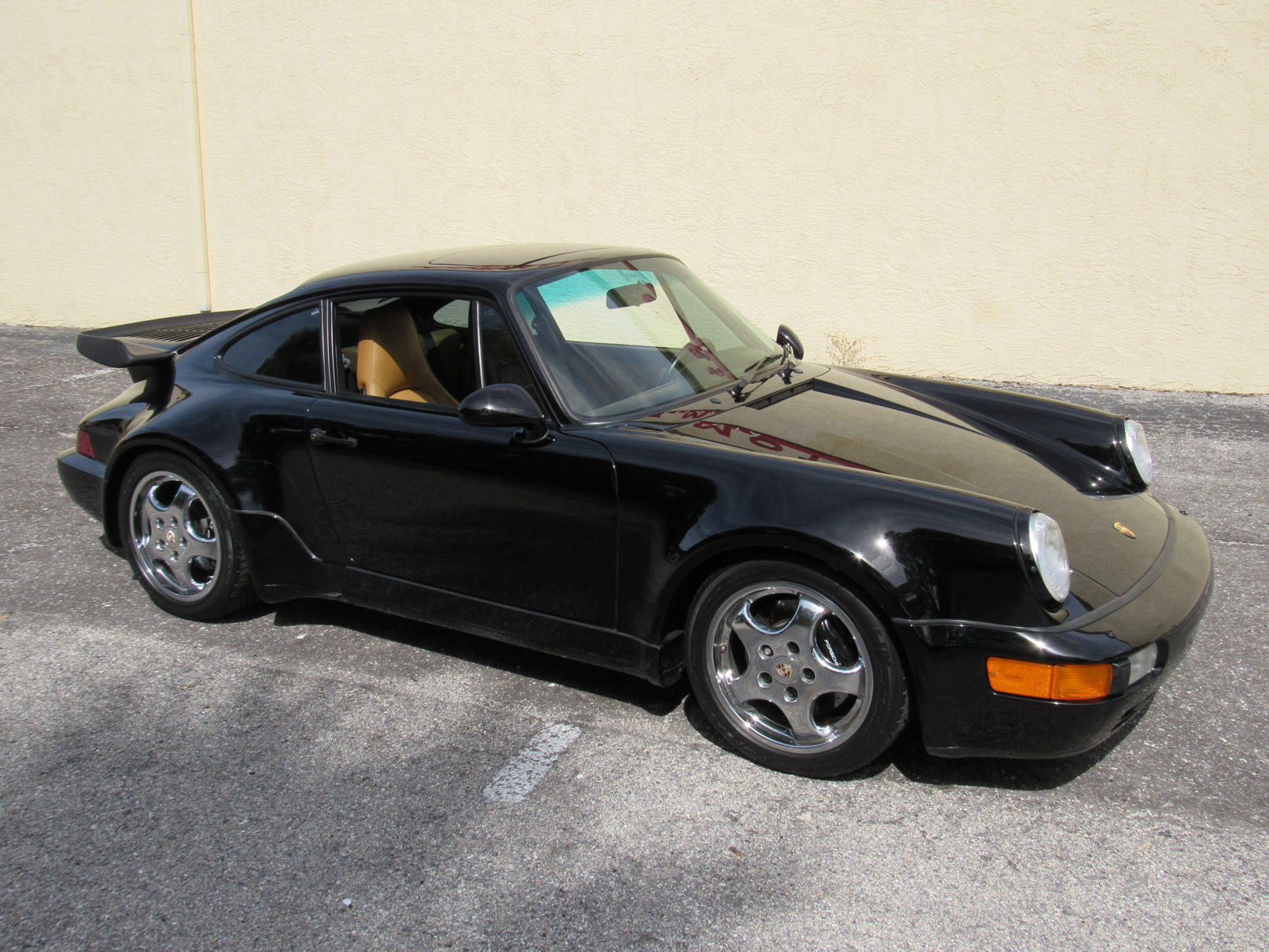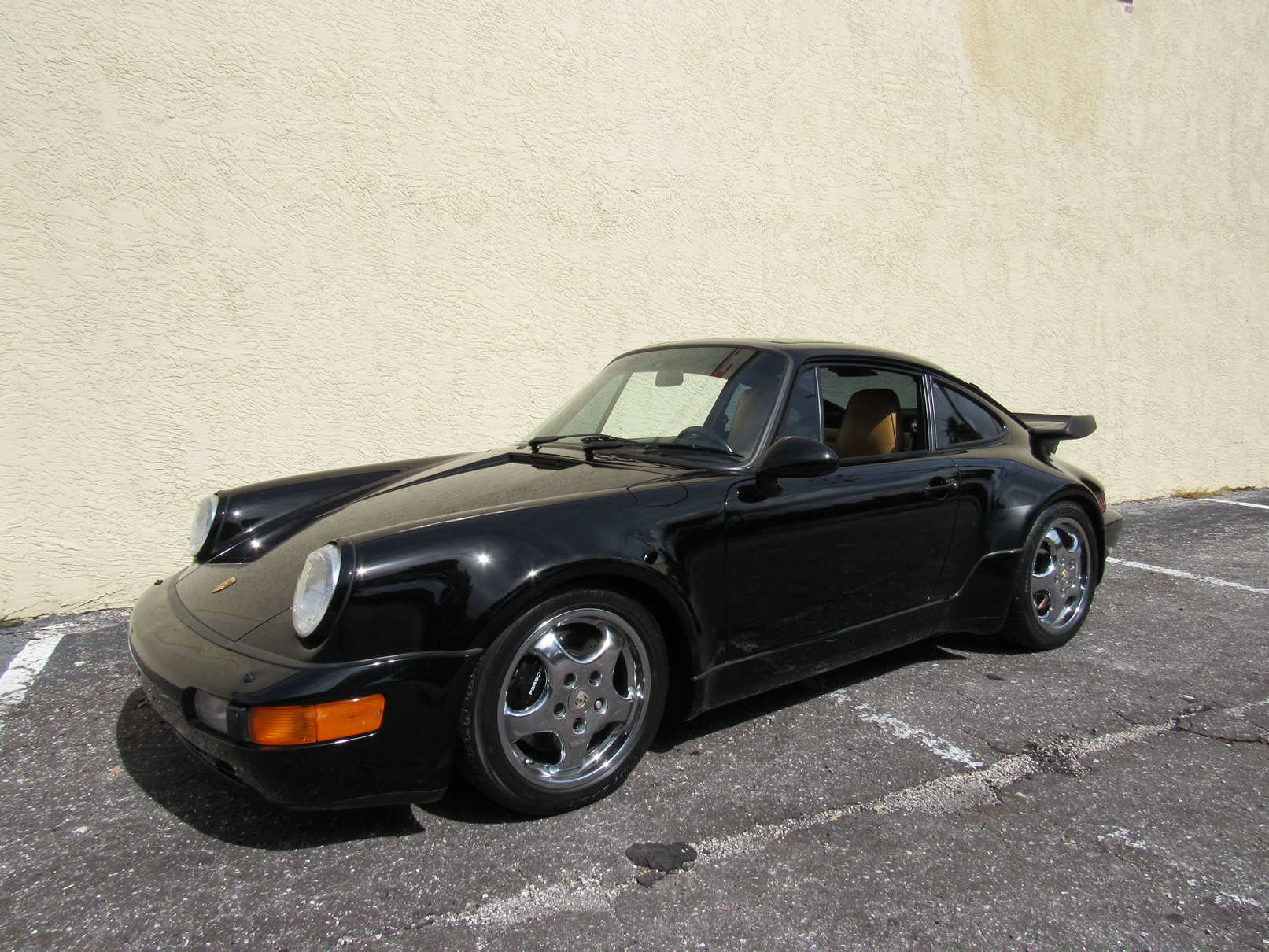 Beautiful 1992 Porsche 964 Turbo Coupe. One of 289 produced for the US market, finished in Black with Cashmere Leather interior and only 26,631 miles. The interior is original with the exception of the factory radio (original is included with the car). This 964 Turbo is loaded with 5 speed manual G50 transmission, Turbo 3.3 Liter Engine, leather front and rear seats, front power seats, power side mirrors, up graded sound system and original radio, Bilstein PS 9 full suspension, FAB Speed Exhaust System, Factory Chrome Cup Design wheels and wheel caps with Porsche crests, and BBS wheels and Tires. Remote Entry with Alarm,, Immobilizer Anti-Theft System. Comes with complete books, Service Records, Tool roll, Two sets of Keys, and more