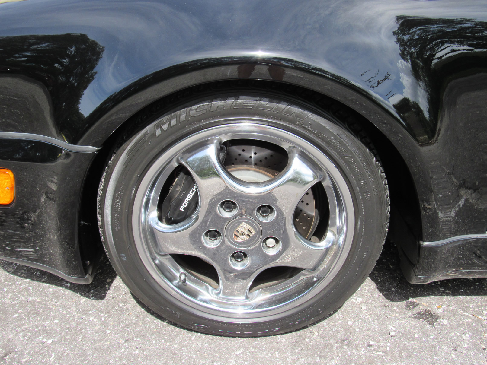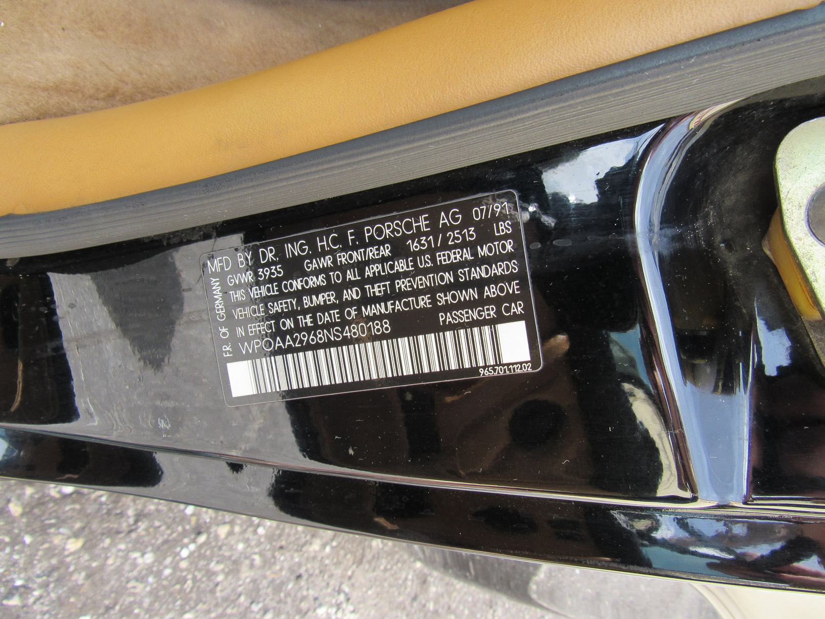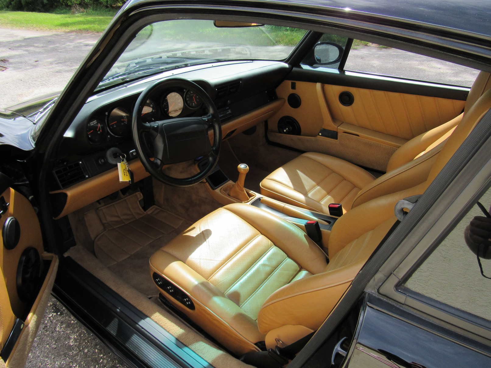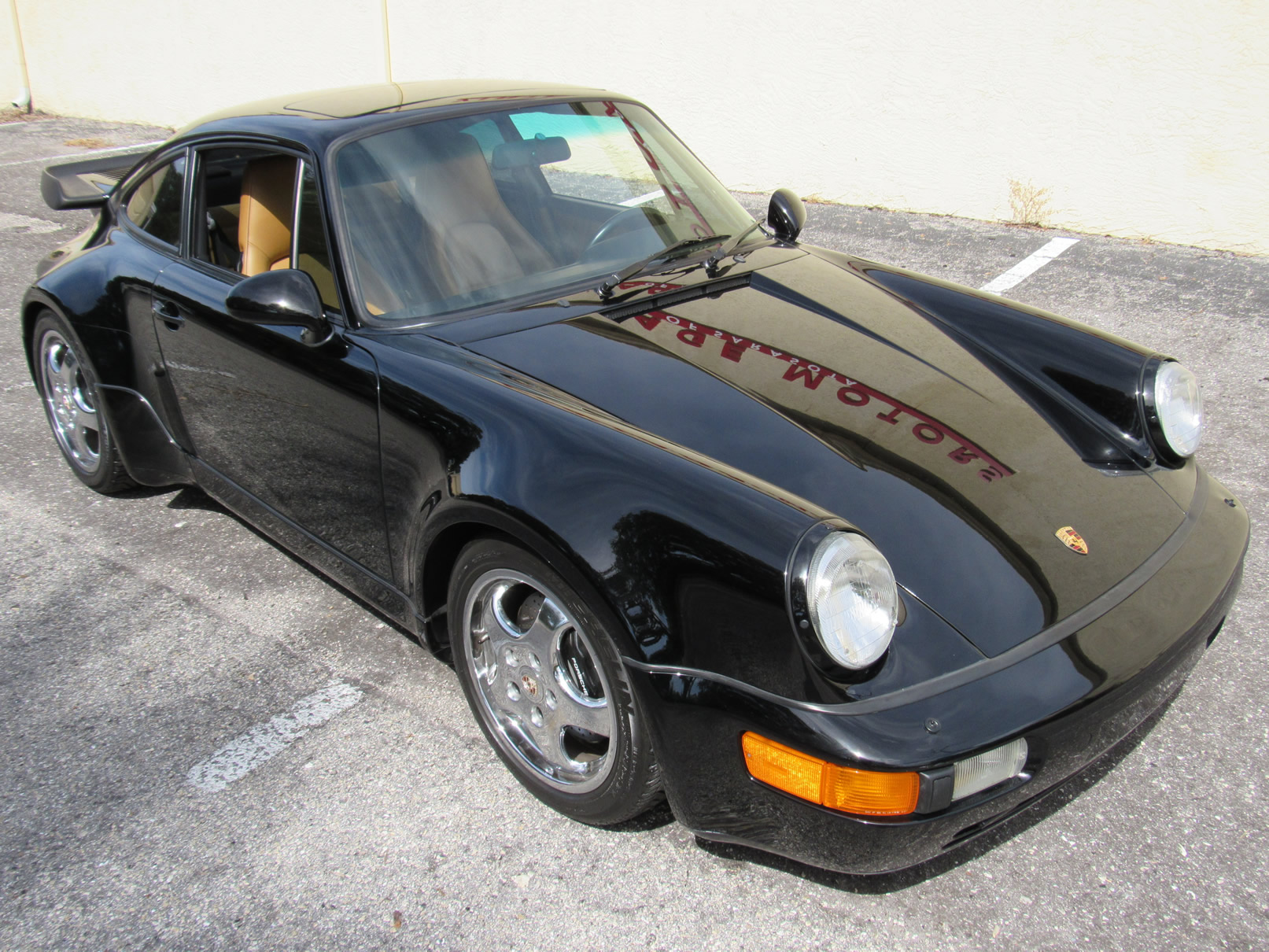 Beautiful 1992 Porsche 964 Turbo Coupe. One of 289 produced for the US market, finished in Black with Cashmere Leather interior and only 26,631 miles. The interior is original with the exception of the factory radio (original is included with the car). This 964 Turbo is loaded with 5 speed manual G50 transmission, Turbo 3.3 Liter Engine, leather front and rear seats, front power seats, power side mirrors, up graded sound system and original radio, Bilstein PS 9 full suspension, FAB Speed Exhaust System, Factory Chrome Cup Design wheels and wheel caps with Porsche crests, and BBS wheels and Tires. Remote Entry with Alarm,, Immobilizer Anti-Theft System. Comes with complete books, Service Records, Tool roll, Two sets of Keys, and more