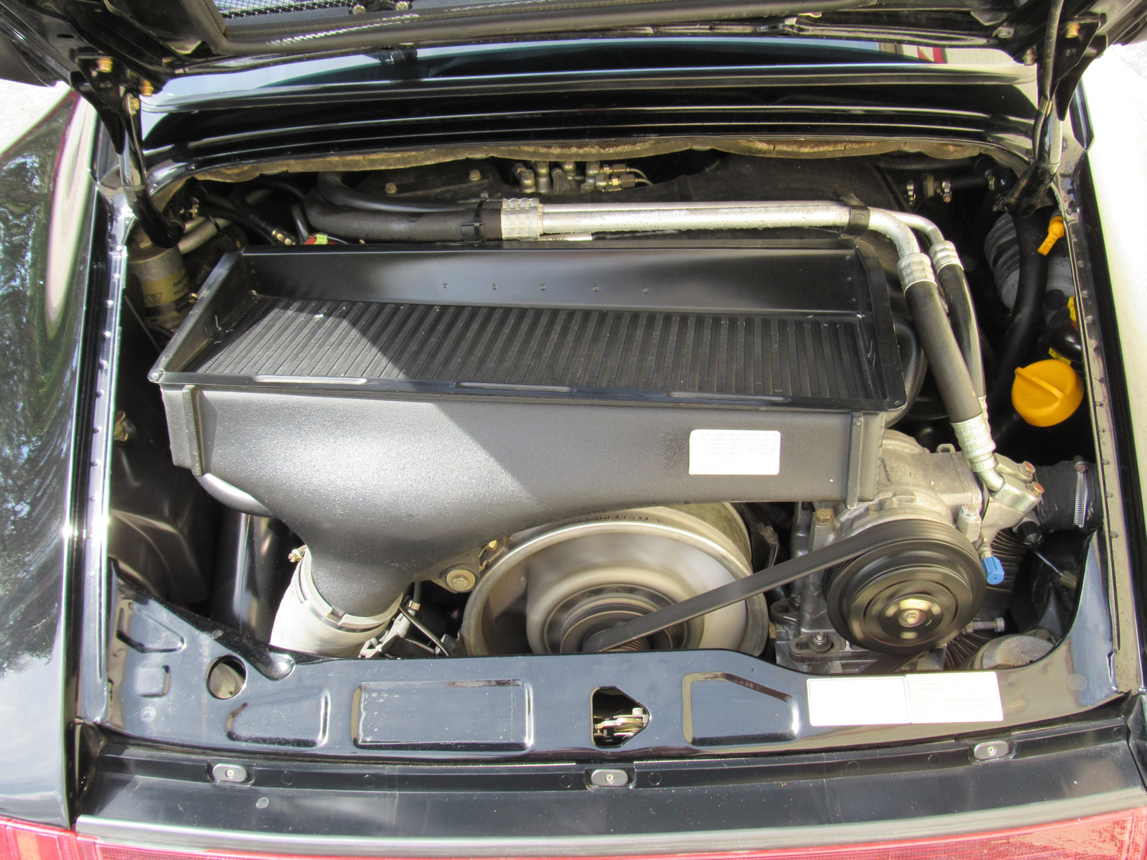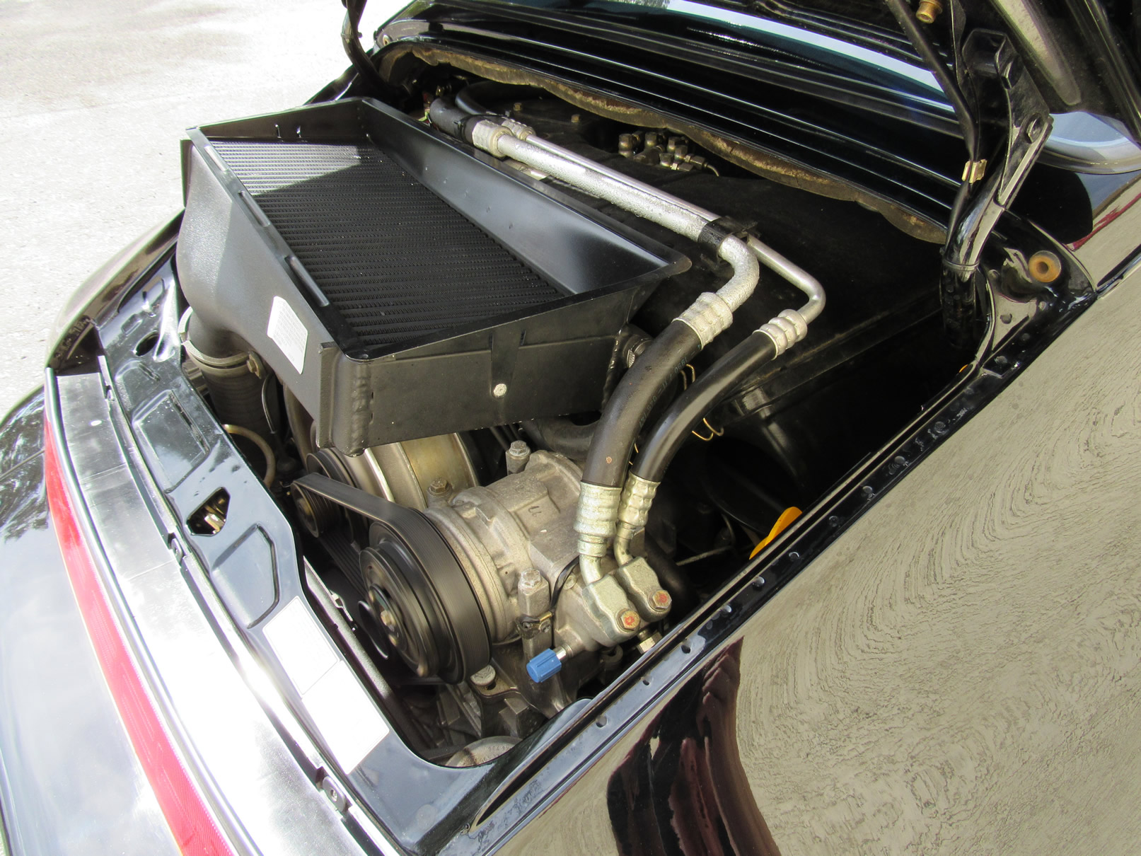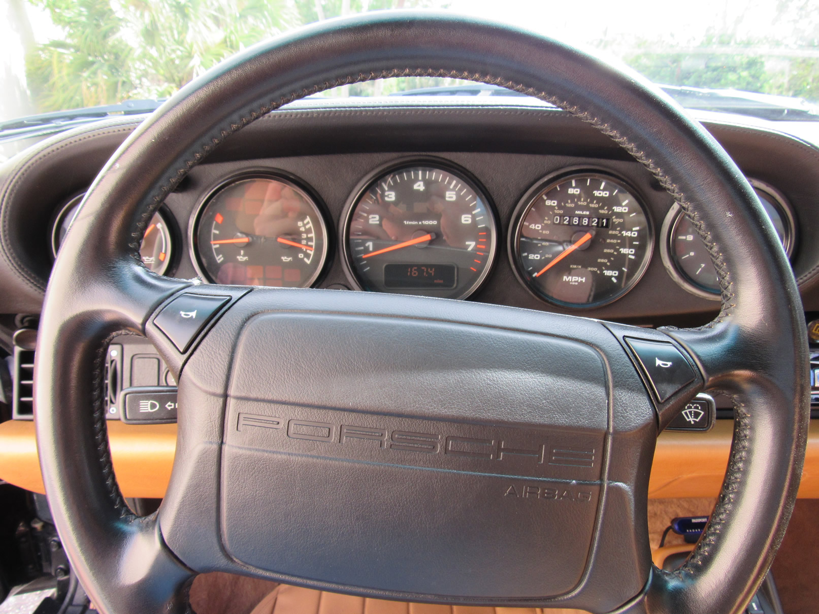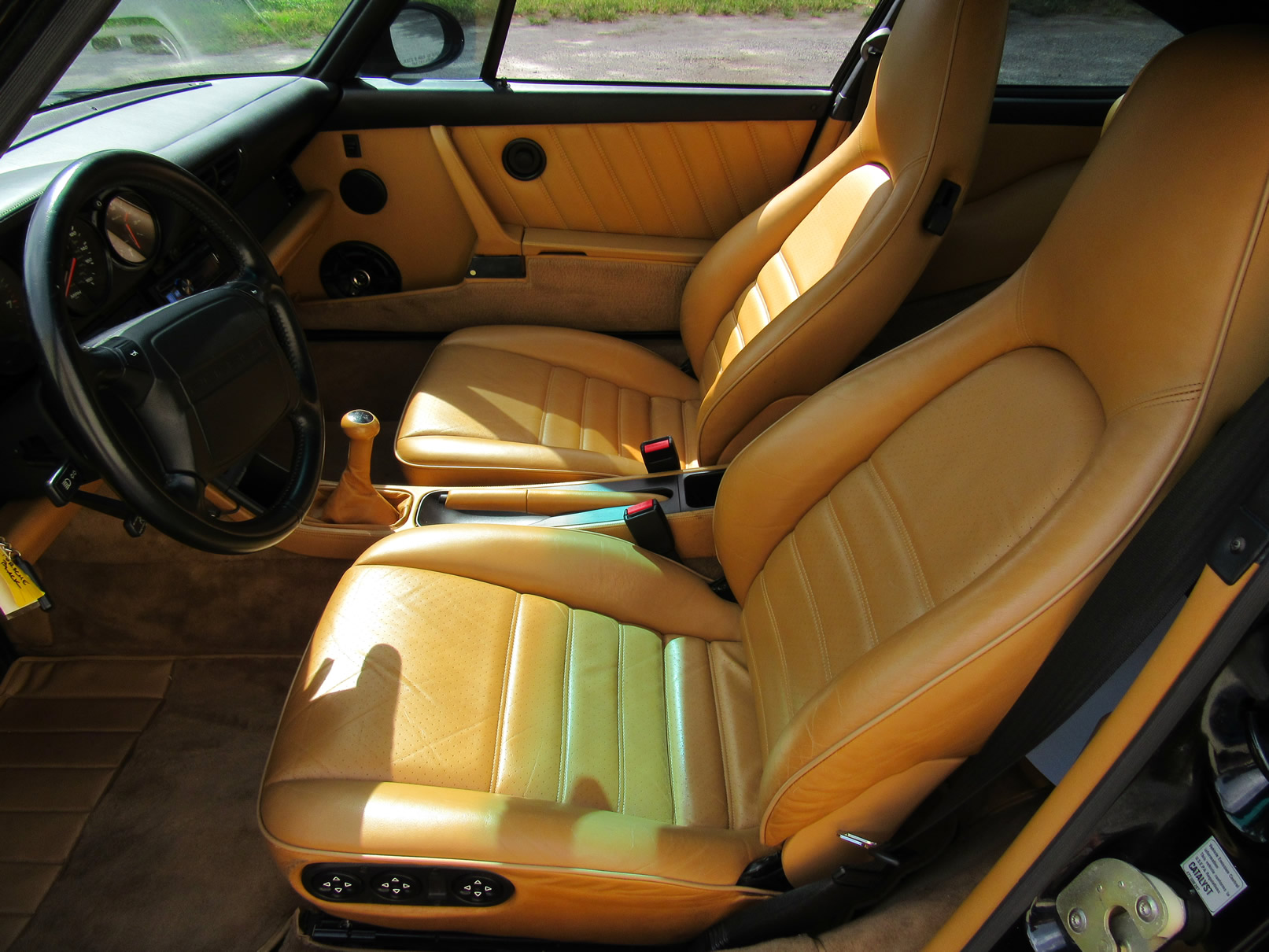 Beautiful 1992 Porsche 964 Turbo Coupe. One of 289 produced for the US market, finished in Black with Cashmere Leather interior and only 26,631 miles. The interior is original with the exception of the factory radio (original is included with the car). This 964 Turbo is loaded with 5 speed manual G50 transmission, Turbo 3.3 Liter Engine, leather front and rear seats, front power seats, power side mirrors, up graded sound system and original radio, Bilstein PS 9 full suspension, FAB Speed Exhaust System, Factory Chrome Cup Design wheels and wheel caps with Porsche crests, and BBS wheels and Tires. Remote Entry with Alarm,, Immobilizer Anti-Theft System. Comes with complete books, Service Records, Tool roll, Two sets of Keys, and more