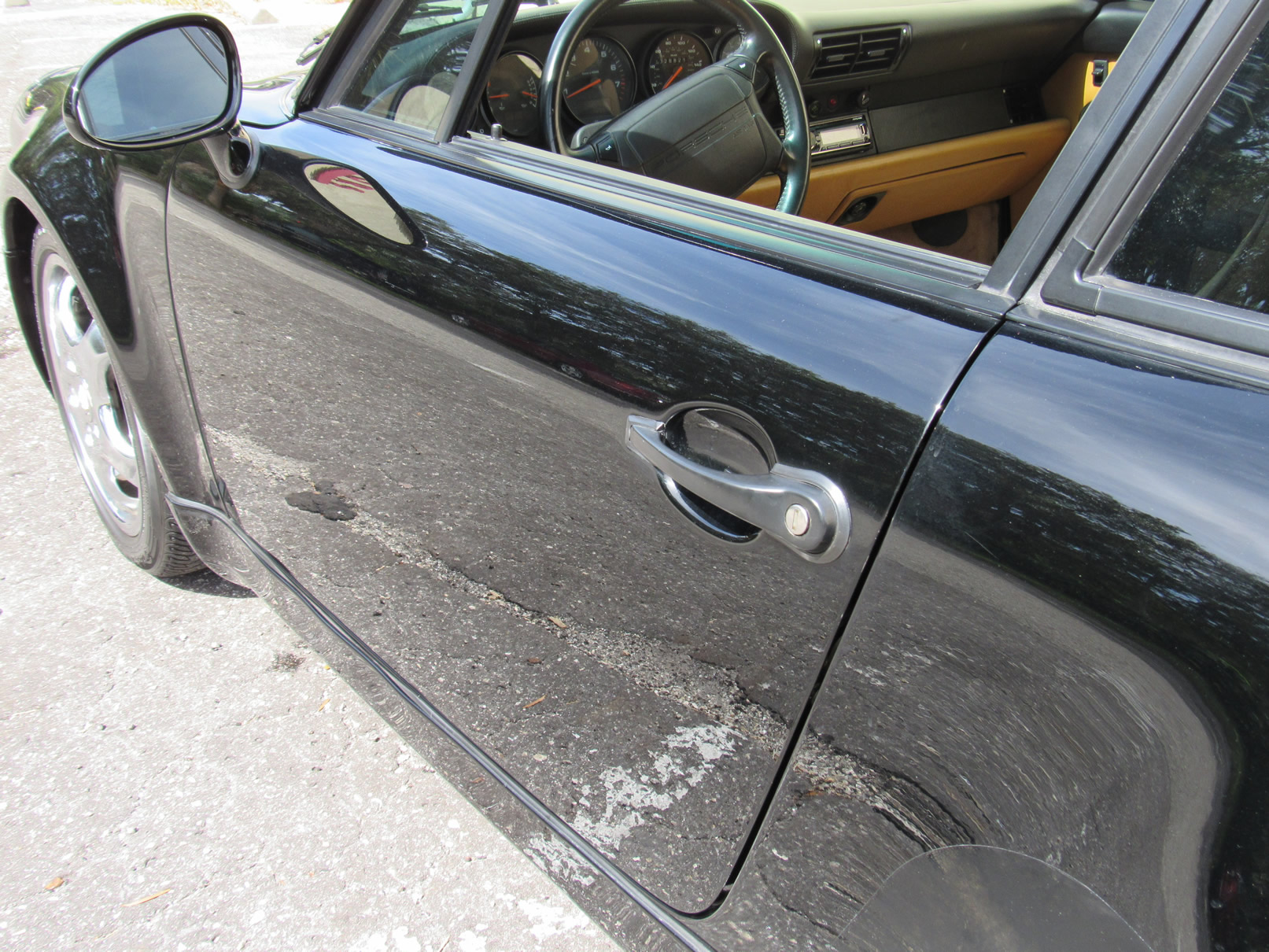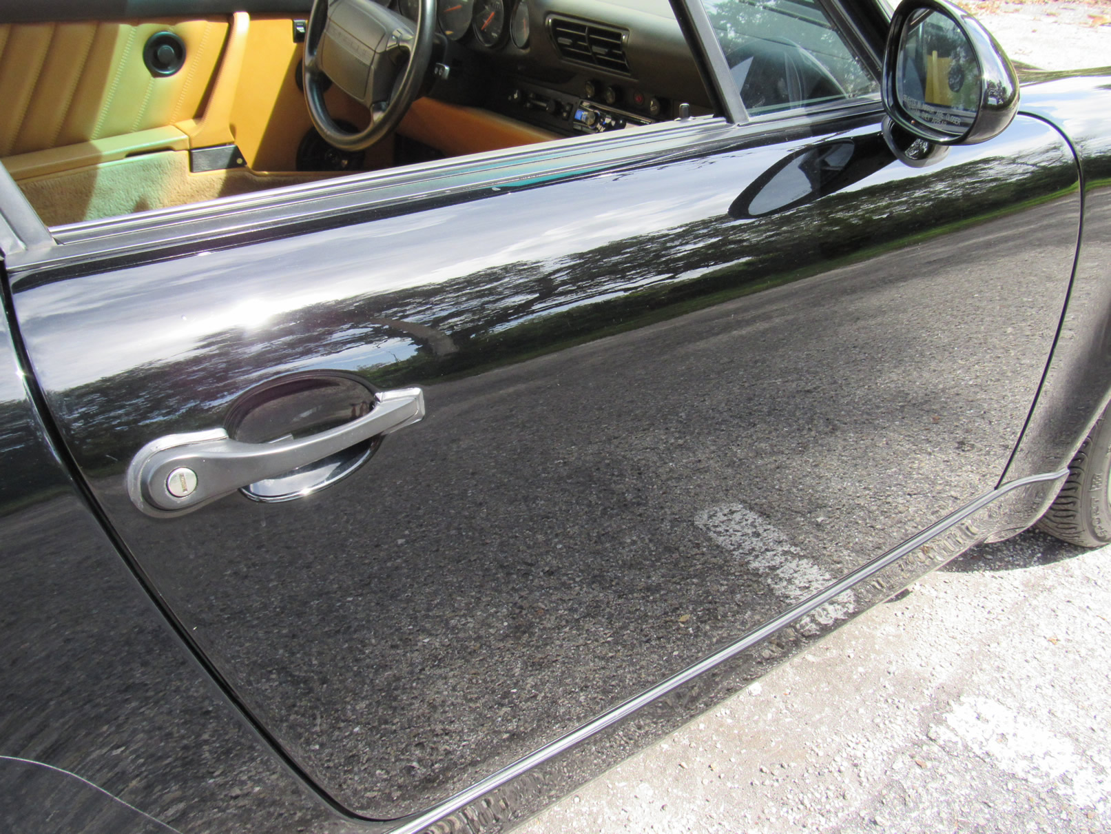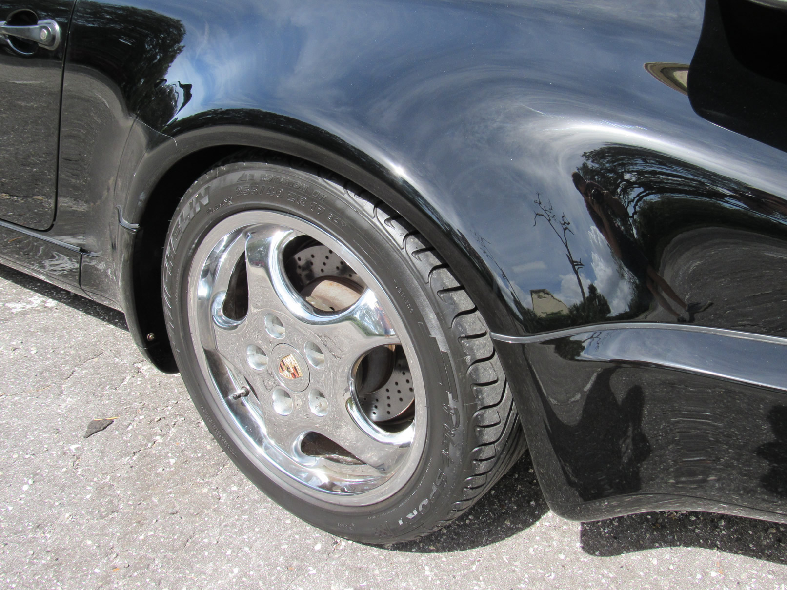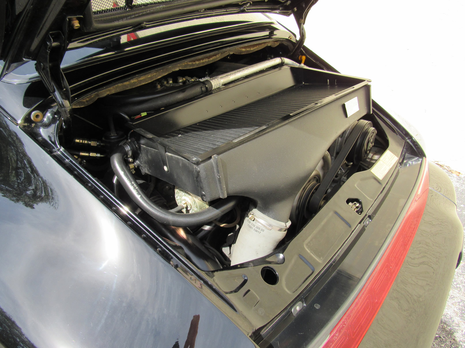 Beautiful 1992 Porsche 964 Turbo Coupe. One of 289 produced for the US market, finished in Black with Cashmere Leather interior and only 26,631 miles. The interior is original with the exception of the factory radio (original is included with the car). This 964 Turbo is loaded with 5 speed manual G50 transmission, Turbo 3.3 Liter Engine, leather front and rear seats, front power seats, power side mirrors, up graded sound system and original radio, Bilstein PS 9 full suspension, FAB Speed Exhaust System, Factory Chrome Cup Design wheels and wheel caps with Porsche crests, and BBS wheels and Tires. Remote Entry with Alarm,, Immobilizer Anti-Theft System. Comes with complete books, Service Records, Tool roll, Two sets of Keys, and more